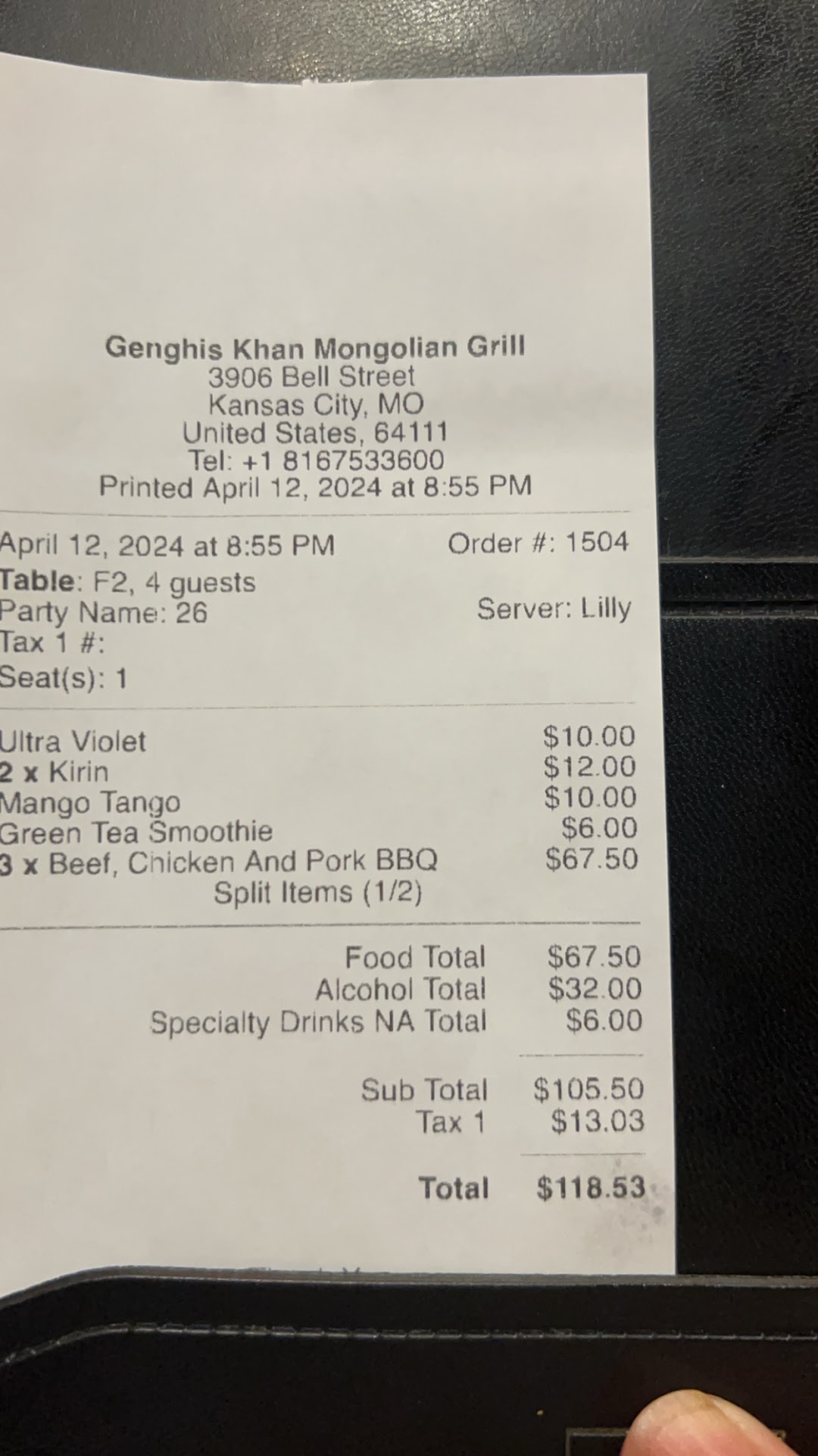 In conclusion, I highly recommend Genghis Khan to anyone who enjoys great food and a lively atmosphere. Whether you're a longtime fan or a first-time visitor, you won't be disappointed. The combination of delicious, customizable meals and a friendly, upbeat environment makes it a fantastic choice for dining out. I'm so glad to see this place thriving again and look forward to many more...