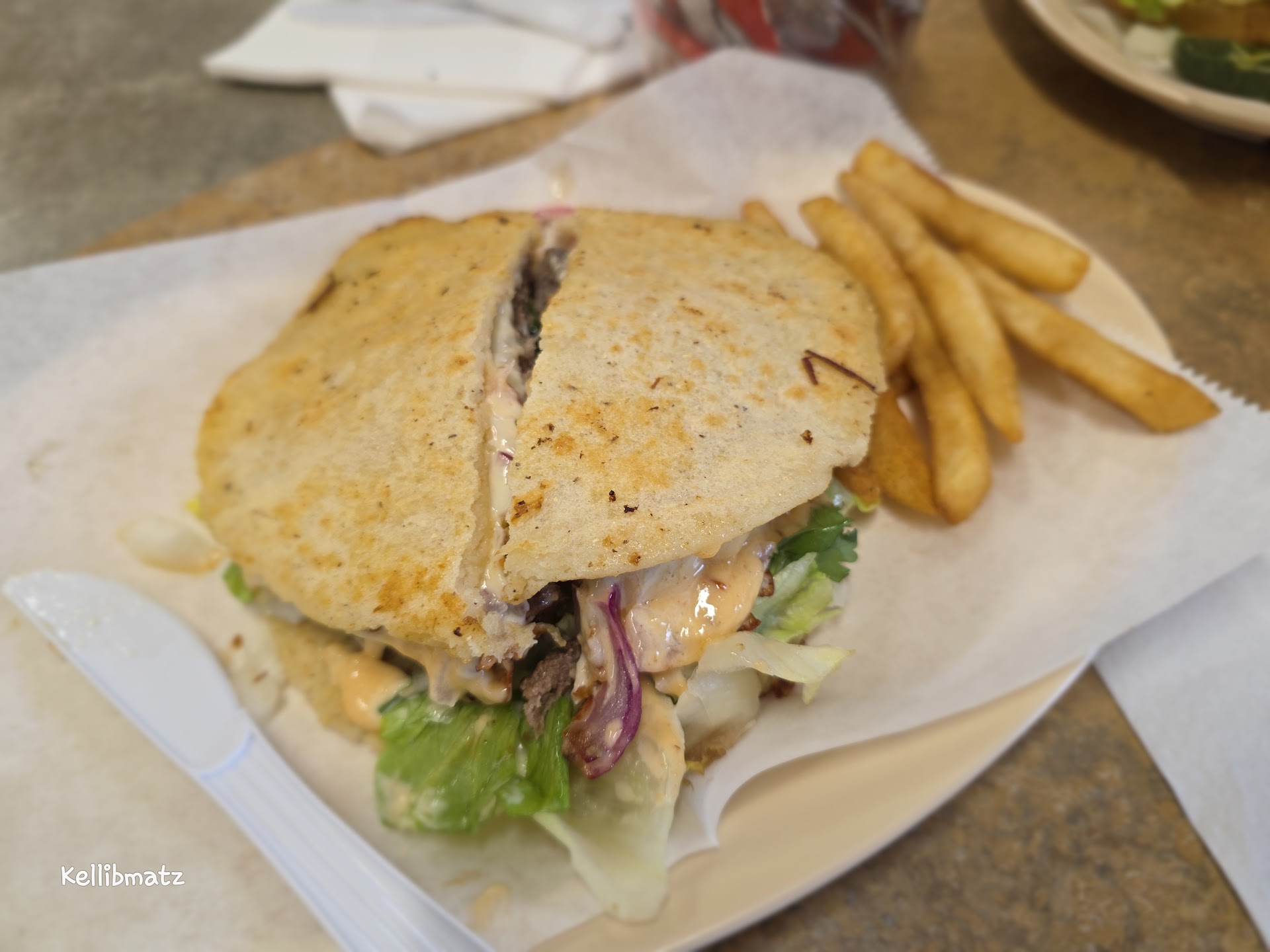 The restaurant smells amazing as you walk in the door. There are a few tables for inside eating and on a Saturday afternoon, they were busy but not packed. We were able to get a table. There are so many choices on the menu, they also have a breakfast and lunch menu. My husband ordered the pulled pork sandwich and I ordered the prime rib burger quezadilla. We had a short wait for our food but not long. The pulled pork was massive and came with fries. It had a delicious sauce and loads of melty cheese. It was as good as it looked. The fries tasted like the oil might have been old or over-used. My burger was DRY. It was on a masa type bun. It lacked any sauce and I didn't even finish the quarter piece that I cut it into. The service was amazing and if you are looking for a great pulled pork sandwich, I definitely recommend this place. I will go back and try something else because the other reviews mostly rave...