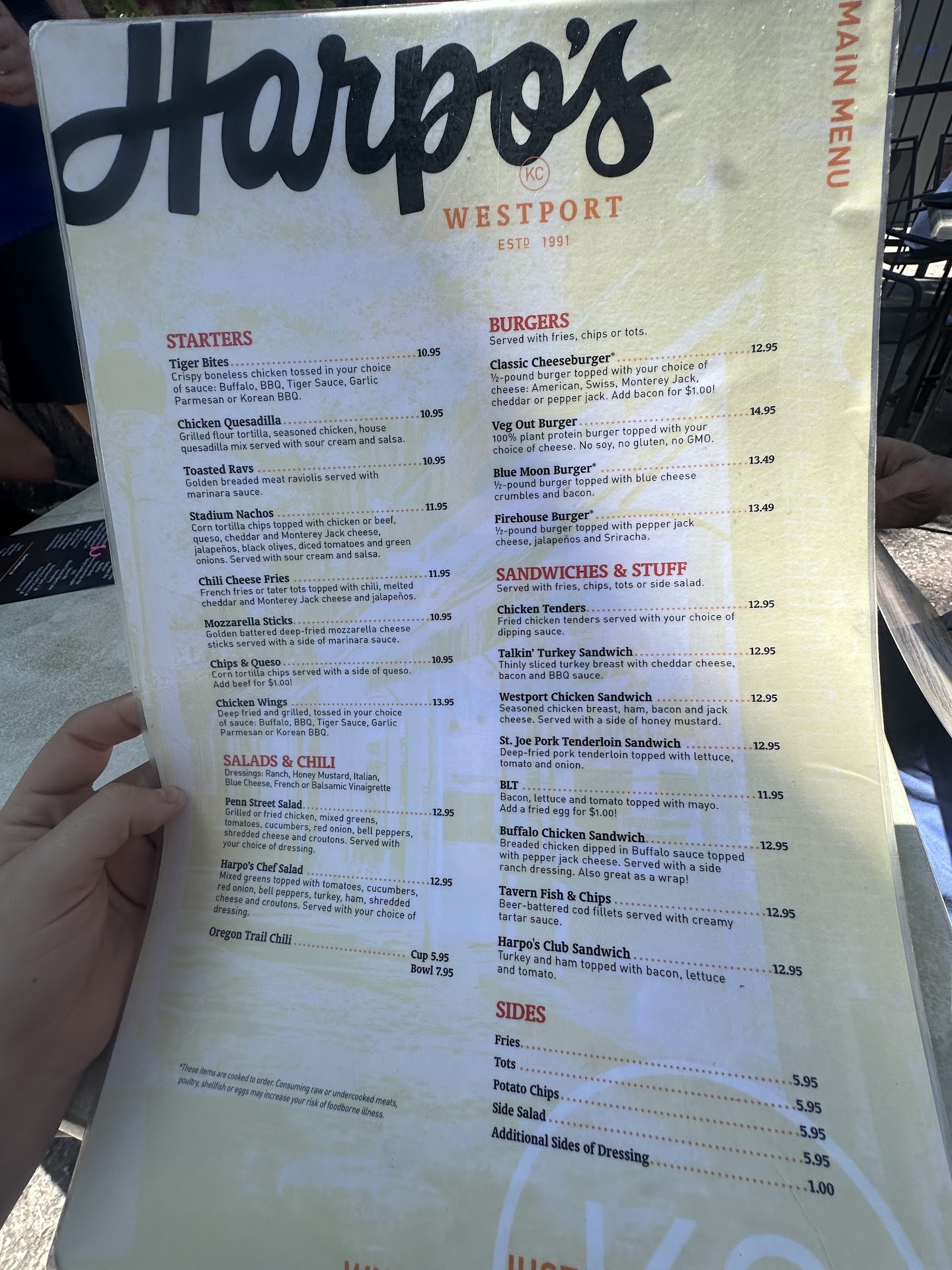Read moreWe went into Harpos on 9/11 at 1:15pm. When we sat down the waitress told us that the kitchen was behind so it may be a small wait. We were fine with that. We were sitting right next to the bar and food service window. The waitresses all congregate or passed by our table multiple times. I only mention this because it was impossible that not only our waitress but all the waitresses saw us sitting there. After a 2 hour wait we asked the waitress if she could find out how much longer our 3 chicken wraps, quesadilla and club sandwich would be. She came back and said the kitchen hadnât printed our ticket so they hadnât made our food but would do so right away. It took another 30 minutes for our entrees to come out 1 by 1. The last person in our party to get their food got it 30 minutes after our first order hit the table. It is now 3:45. The waitress at no time seemed upset by what had happened to us or apologetic that she had failed to check on our food in all that time. She did say they would discount our meal which was slightly apologetic but then brought out or full cost ticket and a handful of 20% off 1 item coupons for our next visit. While I understand understaffing and we tried to be patient with the whole thing it was flat out insulting to give us coupons for our next visit especially since we live almost 2 hours away and weâre only there for the art show. I absolutely would not recommend this establishment to anyone. Our experience...