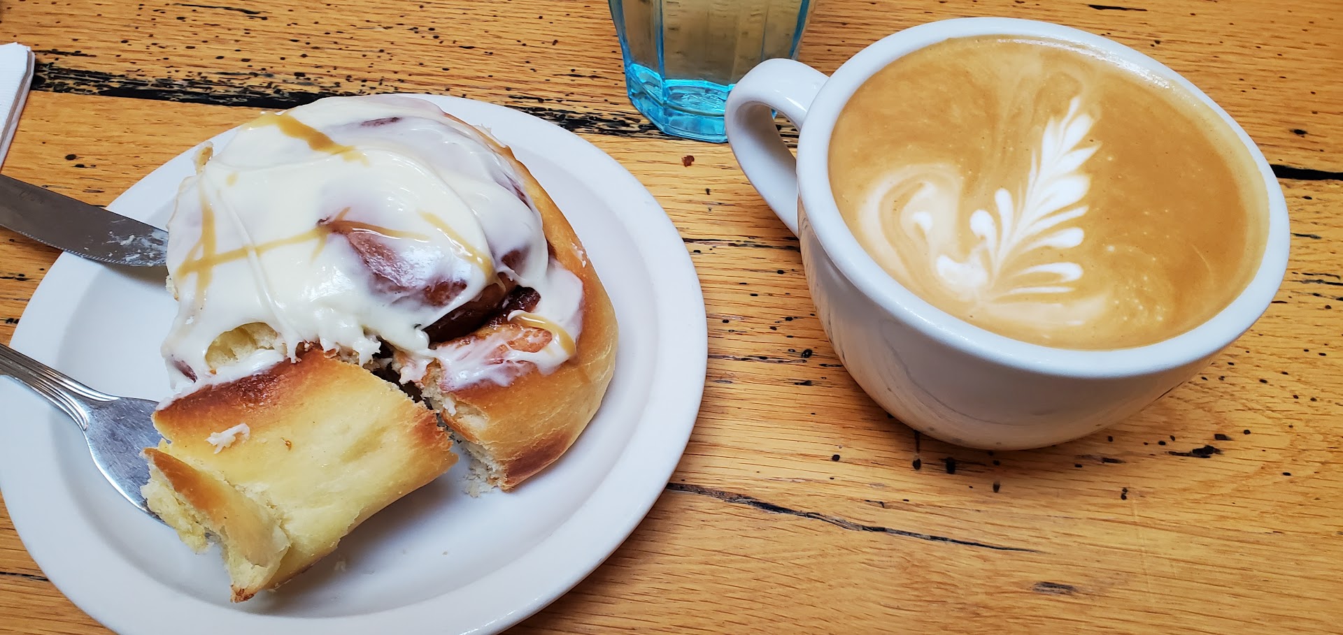 This was my first time here, so I tried both the breakfast special--an egg and bacon sandwich on a fluffy biscuit-- and bakery treats, which included the cherry pop tart and carmel toffee cookie, along with coffee.