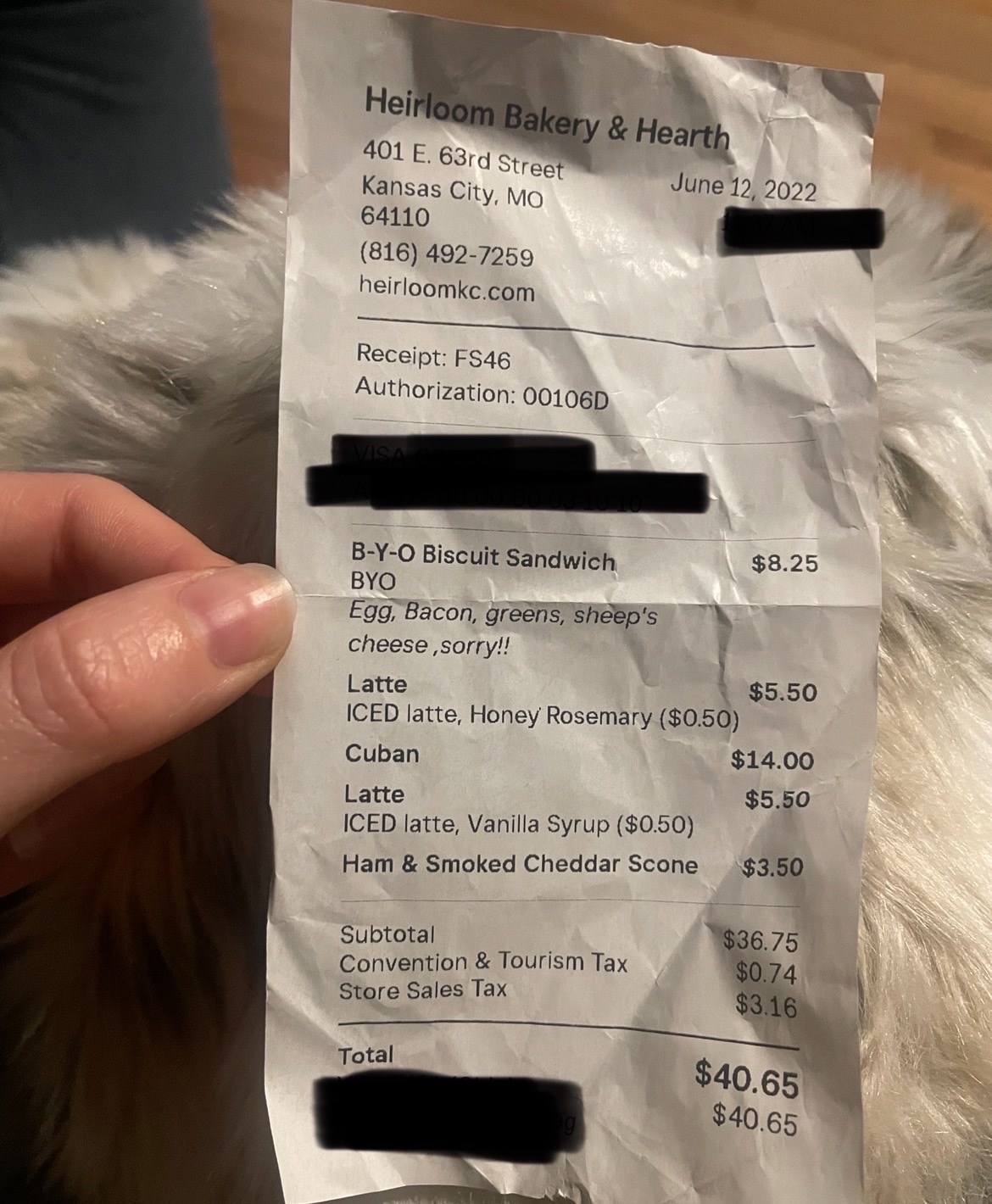 I would like Heirloom to know we threw away our breakfast sandwiches, as we didn’t feel comfortable or safe eating them after an Heirloom employee spoke that way to us. If an employee is willing to speak in such an ill-mannered way to a customer, why would a customer have the confidence what they are eating hasn’t been tampered with in some way?