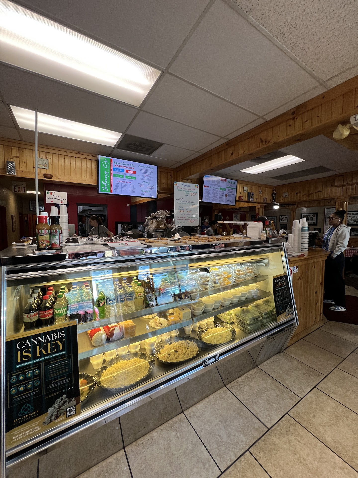 What you can't miss about this place is the vibe is very authentic and shows the history of the place. Pictures adorn the walls and the tables and chairs make you feel like you are on the east coast. Two different counters for pickup of to-go orders and one to order at to stay.