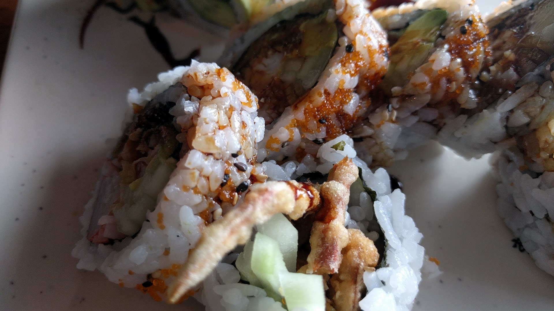 It's a little hole-in-the-wall tucked away just out of view of Zona Rosa, and you have to be really looking for it to find it. The atmosphere is understated, and definitely gives you the feel of a sushi dive, not the kicked up fusion ambiance of Kona in the plaza or Saki on 64th. But it is clean, charming, and cute, and the staff is so nice! The decor obviously has a lot of Asian elements like any other strip mall sushi, but left me with the feeling of a Japanese pizza joint if you'd imagine.