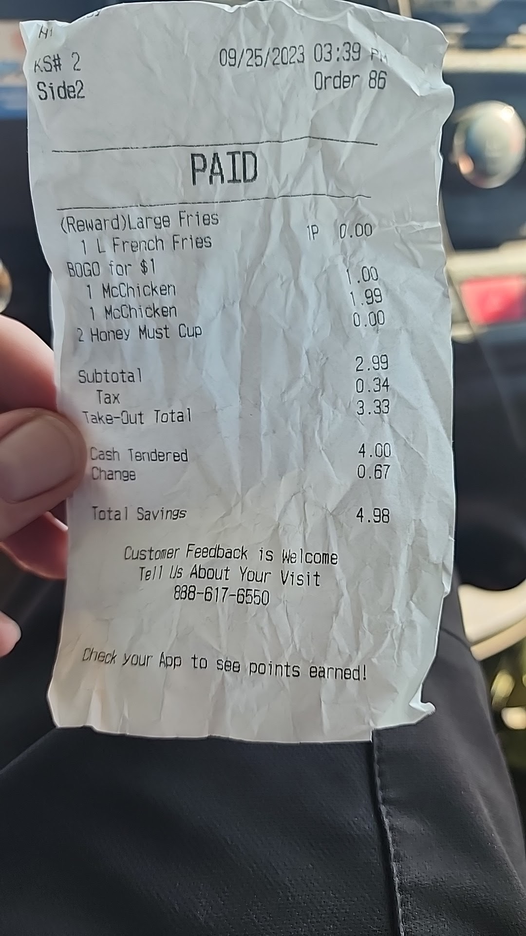 The first problem was that the person taking my order over the kiosk seemed very confused when I told him I had a coupon (and what it was for) for taking a prior McDonald’s survey. It was very hard to hear him, as well, because there was so much background noise.