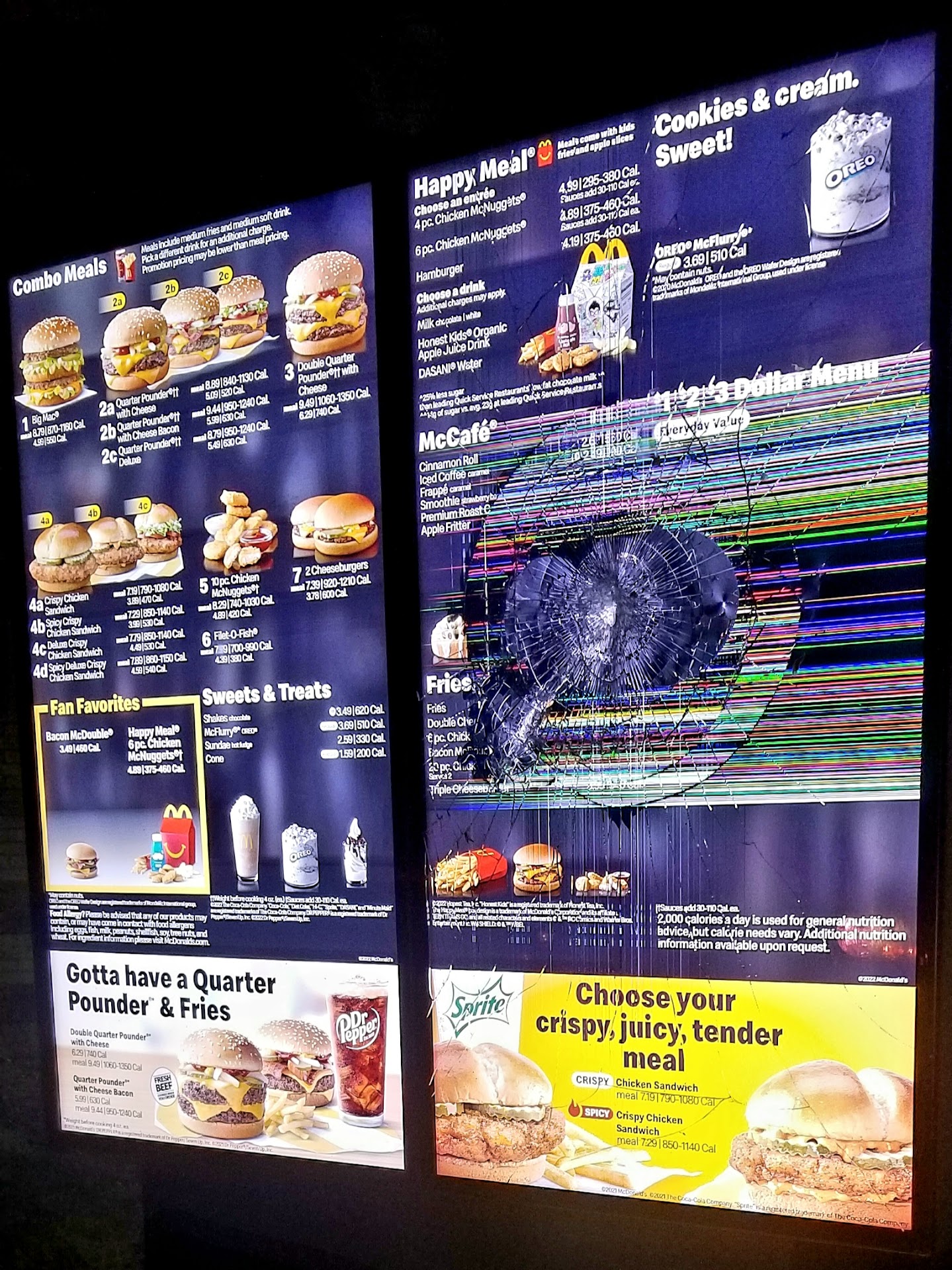 Then, when I pulled to the first window (there was no wait), the girl also seemed confused when I handed her the receipt with the “McDVoice” survey code. She kept trying to call for another employee to help hed. I told her that since my order didn’t actually contain two identical sandwiches, maybe she could change my Double Qtr Pounder with Cheese to another double cheeseburger instead; that way, one of those sandwiches would be free. Instead of even acknowledging my suggestion/request, she gave me the single hamburger — the cheapest of all the sandwiches we ordered — free.