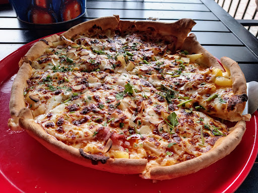 This was the biggest disappointment to our KC trip. We got here just before 8, they are supposed to be open until 11. The host sat us as soon as we walked in. It took a minute for anyone to come by the table and when they did it was the manager who was with the owner at a table behind us. He brough plates, menus and said Shelby would be our server. After a few minutes with still no Shelby the manager came again and got our drink orders, told us they were closing at 8 to have the ovens replaced that night and we got in just in time. We offered to get ours to go but he insisted we were fine. When he brough the drinks we placed our pizza order, General Tsos pizza and fried ravioli. At this point Shelby had walked by several times and was not having any intentions of serving our table, just some looks of disgust. Shelby did flirt with another table in the dining room as she got his order, he had been there when we came in. It seemed she had a few other tables outside. The manager had mentioned she was sat many tables at once, she also seemed to be the only server, which may have been why she blatantly ignored us she had time to be in the corner rolling silverware and being on her phone. The ravioli came and after being constantly ignored we told the manager to make ours to go as we were clearly an inconvenience to them. We could hear the manager talking with the kitchen staff who were also anger as it seems they were all only scheduled to 8 and where still being there working. We could see the front and they seemed to be doing many take out orders and the bar was full. The owner stayed seated at the table behind us and could not have cared what was going on. When our pizza came out the manager had taken off the ravioli for the lack of service we had. It sucks that the management and staff here are so poor, because when we got the pizza back to our hotel it was really good! The crust was delicious and held up to the toppings of General Tso chicken. We got the deep dish which I think helped a lot. This would be a pizza I would get again at a...