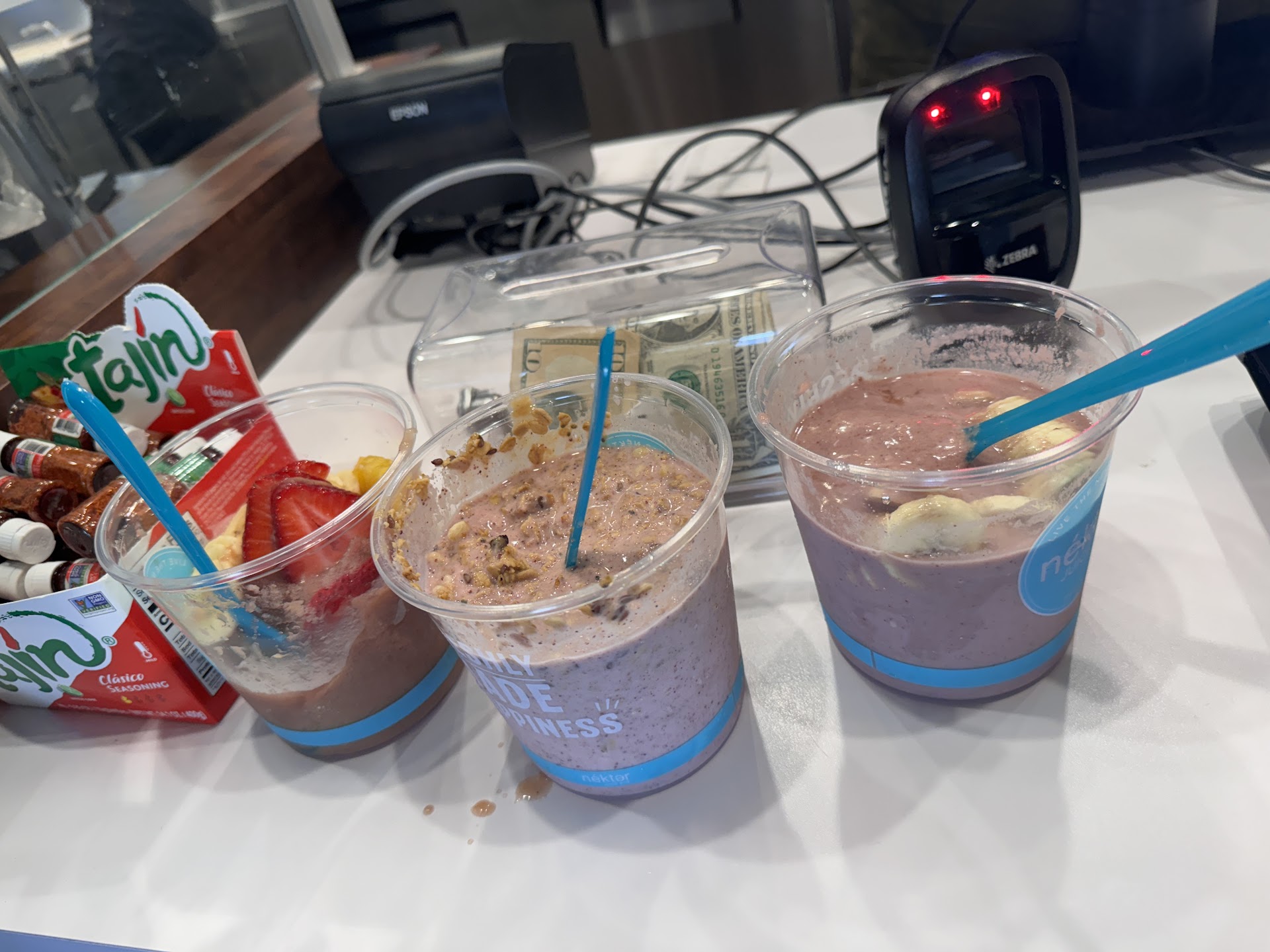What we received were watered-down smoothies, falsely advertised as aƧaĆ bowls. When we asked why they looked nothing like aƧaĆ, we were bluntly told, āthey arenāt actual aƧaĆ bowls, they are more like smoothies.ā Bunch of other fruit mixed into the base and wateree down with yogurt-like tasting liquid ā and Charged at a higher price than an actual aƧai bowl. This is outrageous, especially given their separate aƧaĆ bowl and smoothie menus, plus an "AĆAĆ BOWLS" sign plastered across their front window.