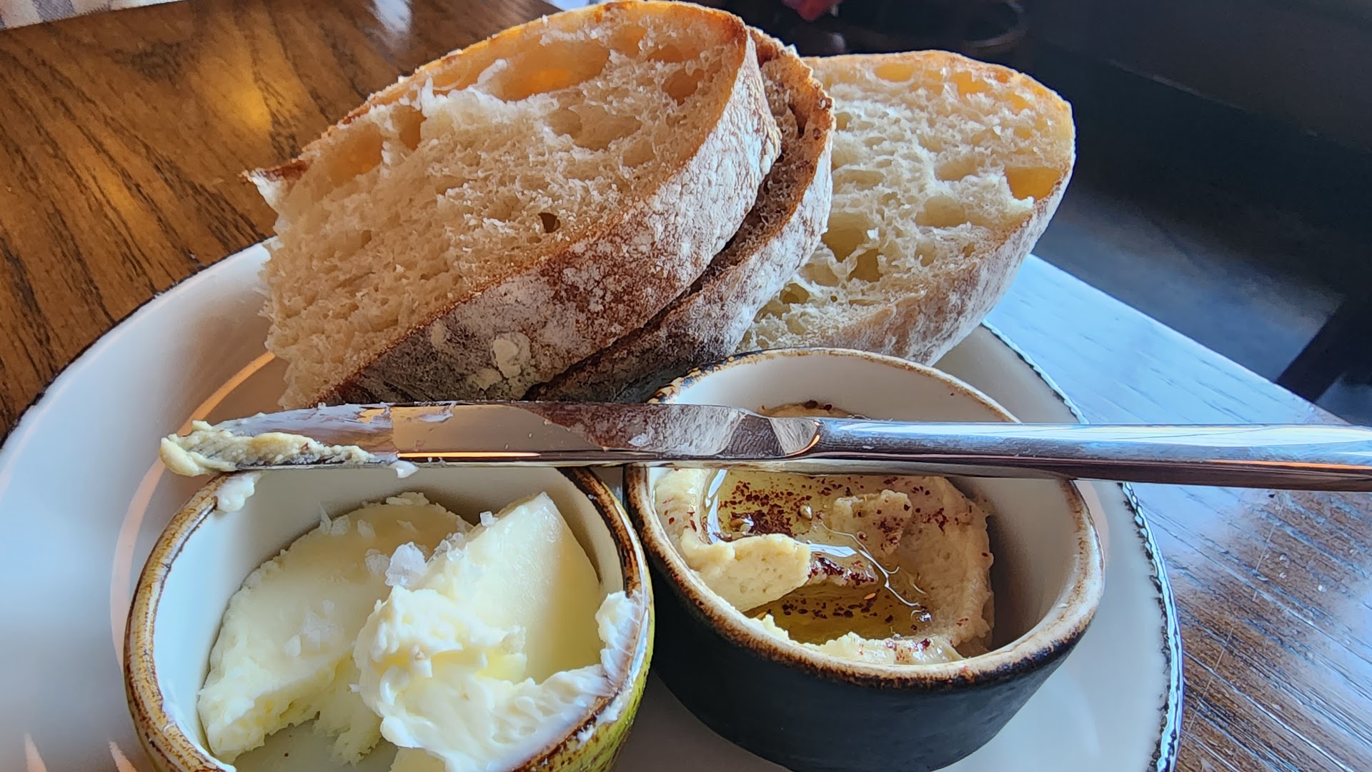 The menu is diverse and intriguing, offering a range of dishes that cater to a variety of tastes, all made with fresh ingredients. The bread service was a bit of a mixed bag. The whole wheat bread was somewhat bland and could have used a touch more salt or more time to develop. The white bread was solid, and the smoked hummus was nothing short of excellent, offering a delightful start to the meal.
