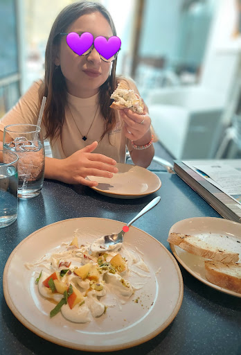Read moreVery good food. Staff was overwhelmed and it was maybe 35% full. Scones are small but magnificent, cappuccino was very good, grilled octopus was incredible. Soup of the day was Hungarian Goulash Soup. It had chicken and what looked like hand-made noodles. Great flavor, a bit on the salty side. Cafe is floor-to-ceiling paintings inside with a nice covered courtyard available too. 20% discount for Kemper...