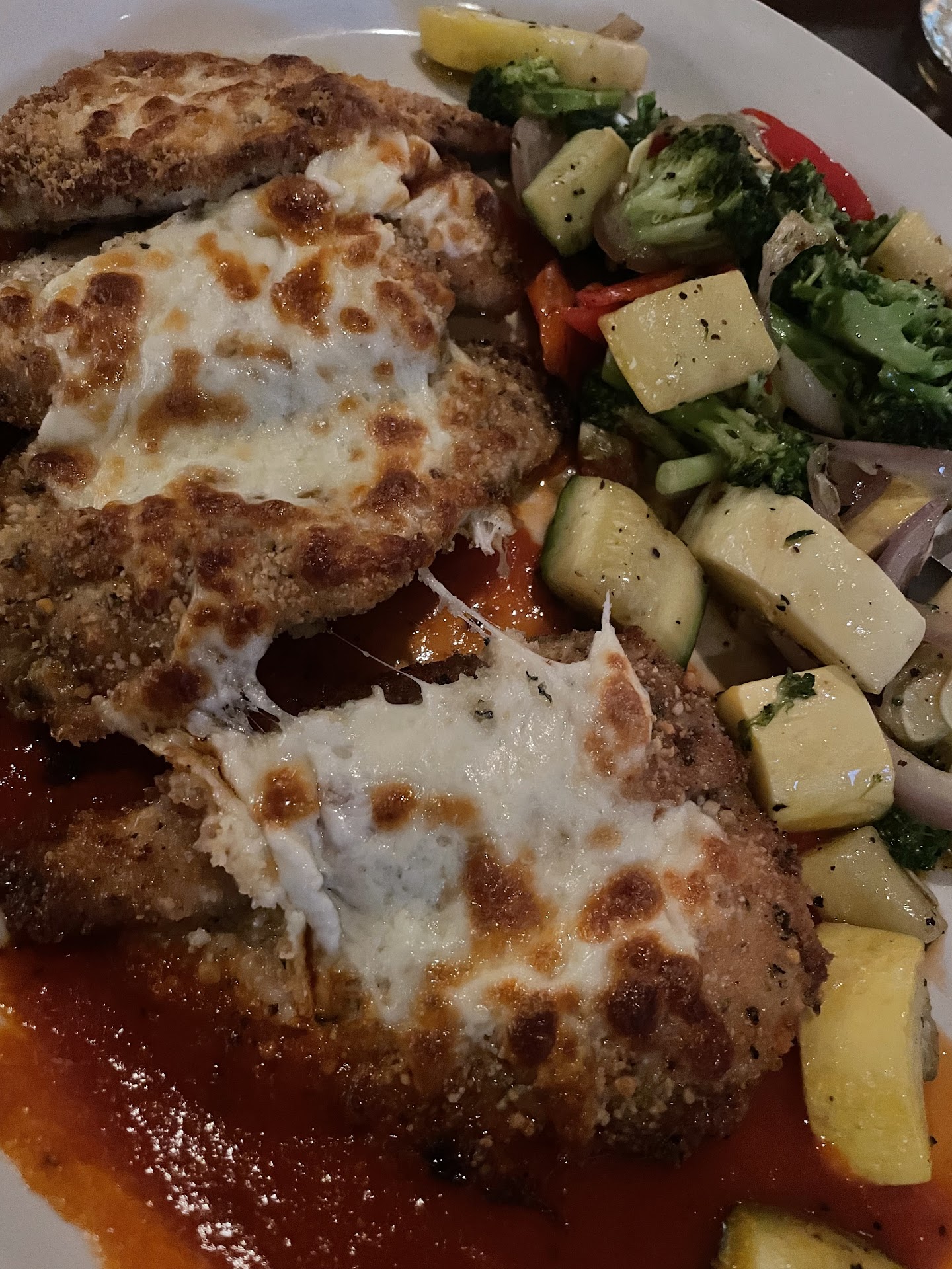 Let’s talk about the food! The bruschetta and olive tapenade were both wonderful. I had the chicken parmesan and it was delightful and fed me for two additional meals - what an investment in delicious leftovers!!! My husband had the lamb chops and really enjoyed them.