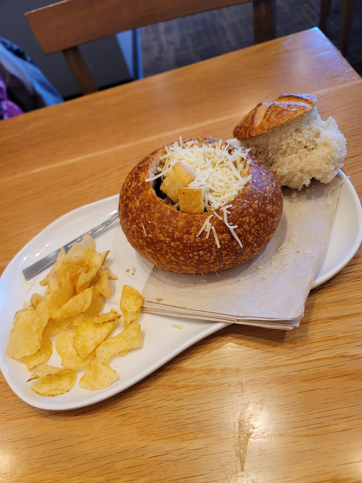 Read moreBeen to this location twice and have been very underwhelmed both times. 1st time went through the drive through and ordered from there, got one of their cinnamon rolls (which I usually love), this one was small flat and stale. Today going through the drive through again...I had ordered ahead, early afternoon for a 730pm pick up after work. Ordered a chicken Ceasars salad and 2 pack of their bread bowls. So after work, hungry and tired I get to the drive through and the speaker guy says everything is ready pull up to the window. When I get to the window I am told they have sold out of the bread bowls. They knew I was coming, the order was there...and the email at 1251pm states everything will be ready. When I ask for a refund, the Manger asked I'd I wanted and extra piece of bread instead...like that is the same cost...nope...then they just said why don't I come in and sit and wait for the bread they have in the oven...about a 20 min wait. NOPE!!!! I am at the drive through for a reason...THEN when I get back to my hotel room and open the bag...there is someone else's food in the bag with my name and receipt. I had to double check it to make sure the correct name was on the bag. They did give me a refund when I called to tell them they gave me the wrong food, but I will NEVER go back to this...