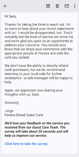 Read moreI have never in my life experienced and seen such miss management. My better half is in the hospital and was craving a great soup, cheddar broccoli to be exact. After waiting in line for 10 minutes I was told that the wait for a soup was 30 minutes, after asking for a manager (Will) i asked if the soup was not ready and he stated it was, I again stated that I understand the short staffed issue and was not asking for a custom sandwich before anyone else because that would be rude. I only asked that he would go over and spoon soup in a bowl. If I was the manager I would have said to everyone in the establishment that if you are ordering a sandwich the wait would be 30 minutes, which I understand but if you want a soup we could handle that faster. I saw 7 people walk out that wanted soup alone, that is a loss of revenue and ridiculous to me especially since I myself am a manager. I called corporate and gave my complaint and all I got was sorry that happened, not asking for free food however I will say that I will never cater an event or eat at this place again. If your managers can't manage and make decisions that can accommodate your customers and the best interest of revenue and repeat customers than I will no longer give my companies/personal money again. To say I'm disappointed is an understatement because I love the...