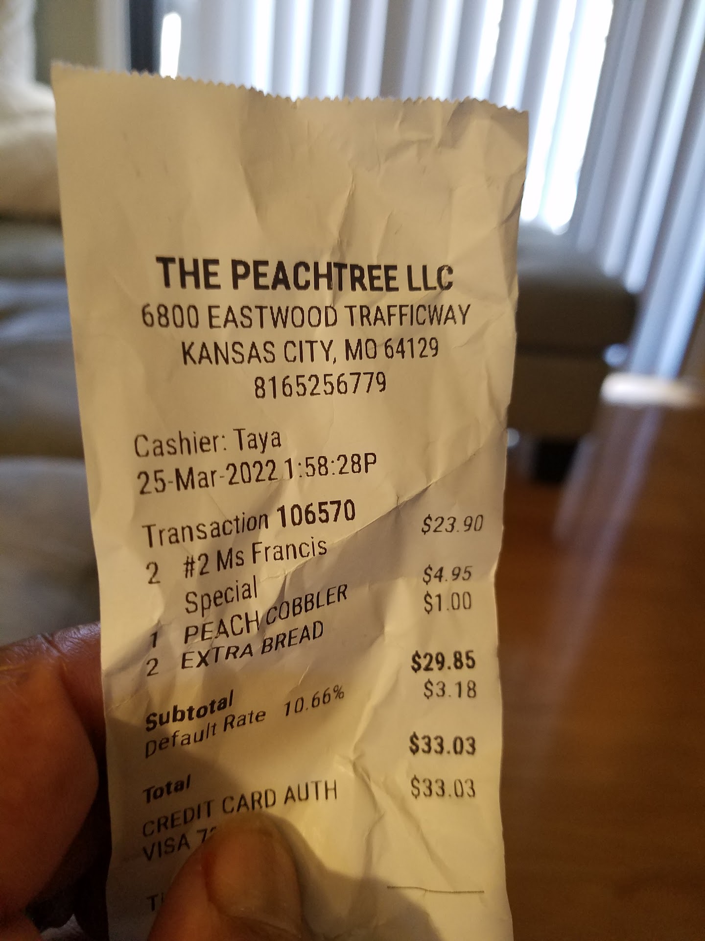 On Nov 4,2025, Peachtree came on power 105.10 to announce how the owner is a million dollar woman from her receipts and wanna give back to community during the government shut down....they said from 3-6 pm kids can eat for free...and those would wanna support others can do a "pay it forward" discount meal blah blah....