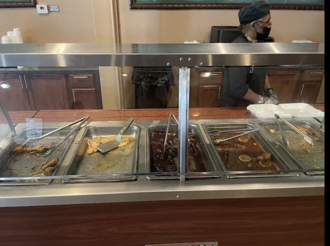 I chose this restaurant strictly from the reviews. When I first arrived the building looked amazingly nice. Then I walked through the door; into a cave! There was no light whatsoever. The customers that were there were crowded next to one of the only open Windows available. I looked at the buffet, it was extremely small. I seriously thought about walking out at that point, but I was hungry and thought hey I'll give it a try. I ended up paying close to $15 for the buffet and when I looked at what was on the buffet, there was absolutely no food. I was not sure if I came at an off hour but there should still be sufficient food for the existing customers. The salad bar had a bowl of salad two sides and 8 different sauces which I do not consider a salad bar. The two hot bars had one fried chicken, one baked chicken and one meatloaf that looked good but was drenched in sauce. The the last hot bar is where all the sides were displayed. The peas and supposedly carrots; I told her fresh, I beg to differ! Peas and carrots do not have that dengy green whereas fresh peas have a bright green color. You only get that color out of a can. Once I got seated I was informed that there was no Pepsi, no dr. Pepper and no I believe it was Mountain Dew. The drink was included in the price so I felt obligated to get a drink since I only wanted water due to the Heat. I ended up getting a lemonade which totally caught me off-guard with the amount of sugar in that drink. I had to ask for a glass of water just to mix the two to calm it down a bit. I went to try the buffet and everything on the buffet was way too salty! The Fried Chicken was decent. The baked chicken; I couldn't even get a bite out of it, was way to dry. The mashed potatoes were decent. The peas and carrots were absolutely salty, not surprising as they came out of a can. I tried the collard greens which were decent. But,the cakes were disgusting. I was really hoping they would be appealing because they looked beautiful. I was going to try the meatloaf because it looked good and I'm very picky on Meatloaf. If it's not firm I'm not trying it, but this one was firm. The only thing that deterred me was the amount of greasy sauce that was covering the bottom of the pan. I wasn't about to take a bite. The mac and cheese did not look appetizing. It looked as though when they combine the noodles and the cheese that the cheese was not thoroughly heated to combine the two ingredients thoroughly. Perhaps they used the wrong cheese because the cheese was not a sauce it was more like stringy goop in addition to the noodles. The Mac n cheese was so greasy, when I went to put some on my plate the grease was dripping off of the cheese which totally made it unpalatable to me. Didn't even bother with the salad bar. So I ended eating two pieces of fried chicken mashed potatoes and some collard greens and super sweetlemonade for about $15. Totally not worth the trouble or the time because I could have easily have gotten that at Popeye's Chicken for way less and way better.