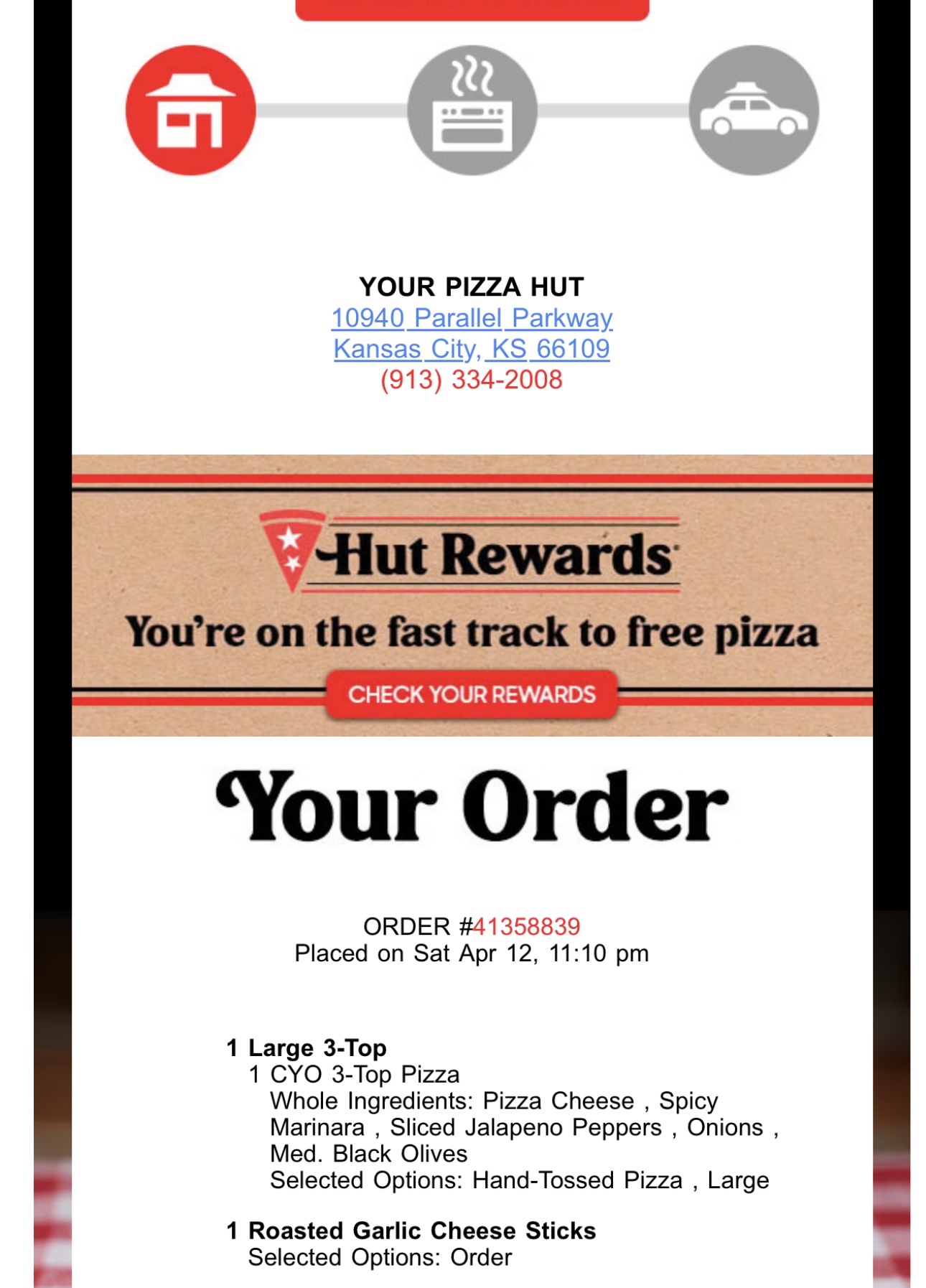 Read moreRating this pizza hut 5 stars because they had a very nice black man who cannot speak deliver my pasta, cheese pizza cheezit , and wings. I love that you give everyone a chance to be a delivery driver. I have seen him before many times delivering here but finally came to review cause this pizza hut gives everyone even with a disability every opportunity to succeed. Please send this to your most upper management team. I didnt get the guy name but he was very friendly and I will continue ordering my pizza from this location because of this. Thanks for giving everyone opportunities pizza hut !!! Even though he couldnt speak he told me the with hand gestures that the cheeze-it pizza is the best and everyone orders it he gestured it with his thumbs up and motioned bon appetit! So kind of you guys for letting this guy succeed !!! Wish I could rate 100 stars to this pizza hut at legends...
