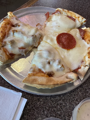 I am not sure how this place got even close to a 3 star review. Maybe because the service was good. We went in to try this place based on Google reviews. Terrible decision. 38 bucks later plus tip, we should have stayed home and had a frozen pizza. We ordered the Tuesday special. Two small salads, appetizer, and a large one topping pizza. The salads were tiny, with lettuce, mozzarella, two pepperonis and fake bacon bits, all drenched in salad dressing in a bowl the size of an orange. The cheese bread was low quality bread with melted mozzarella cheese and shaker style Parmesan on top. Bread wasn’t crispy at all. Pizza was paper thin crust, tasted sweet and the sauce and cheese was sub par. We ordered it with ground beef and the meat was about what you would expect from a prison or large hospital cafeteria. The only positive take away was the server. She was extremely pleasant and I honestly felt bad for her because she is associated with this terrible food. We have never left extra pizza on the table and not gotten a take home box for left overs. Today we did. Save your hard earned money and just get a Tony’s frozen pizza. You will thank me for the money you saved and the disappointment you won’t have to feel. ...