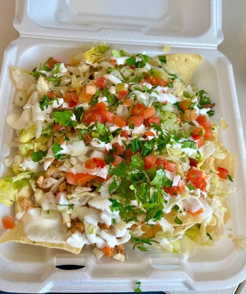 Order: Nachos with pollo (grilled), no jalapenos. Ordered to go.