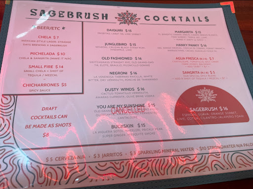 Read moreOver a week ago I took myself out for a cocktail at Sagebrush. I loved the vibrant yet soft vibe of the place. I didn’t recognize any of the music playing, but liked it so much that I gained a new artist to follow. The bartenders were subdued, yet engaging and were all the company I needed. They made a little small talk with me & offered me a taste of a cocktail that I didn’t order but knew I was torn between that & the choice I had already made. I want to return back soon whether it be on a date or...