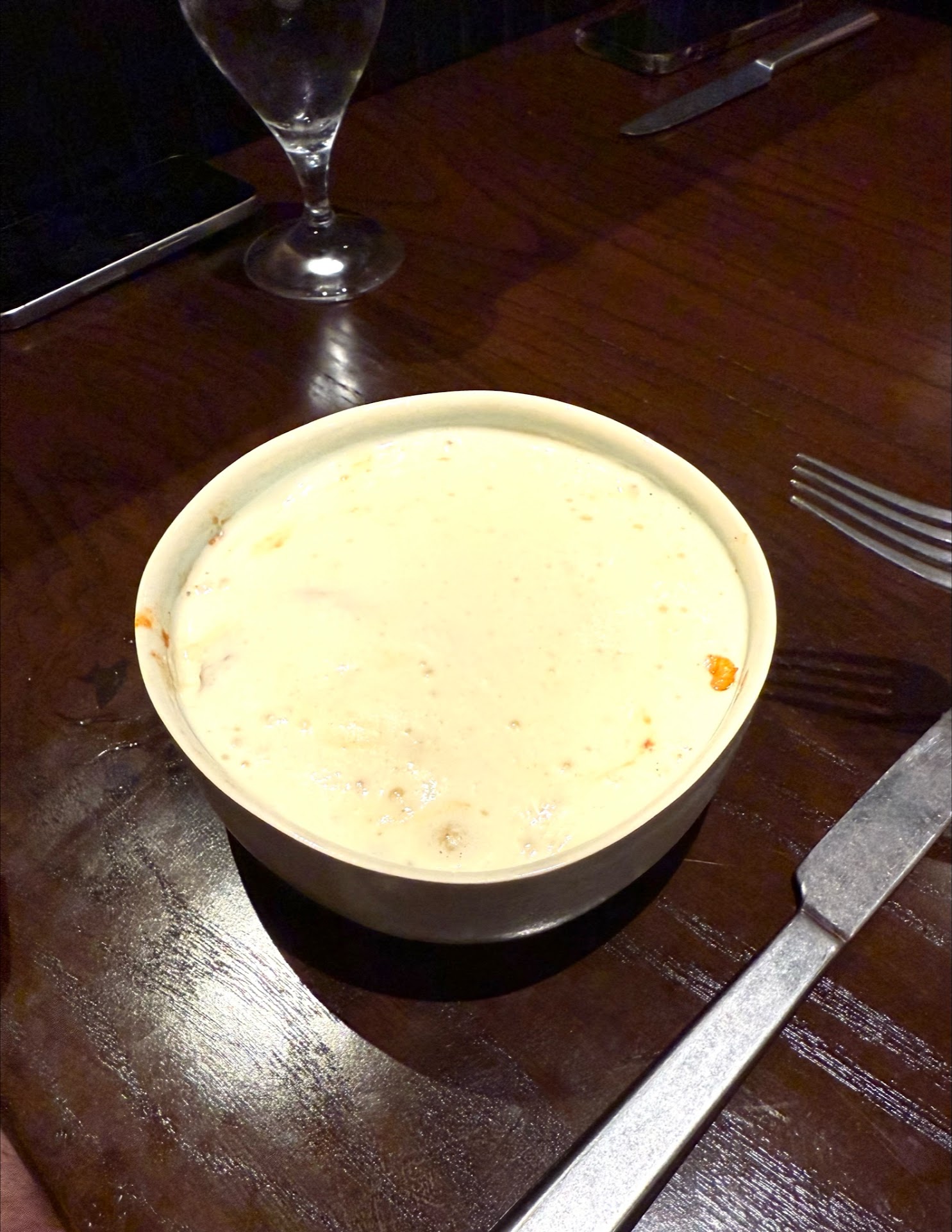 We decided to try this place for restaurant week. The table where we were sat had a track light above it that was so bright it was almost blinding. However, I asked if the lights were on dimmers and our server quickly had them turned down. In my opinion, they should consider always having the lights turned down in the evening as it would really improve the aesthetic, making it feel more warm.