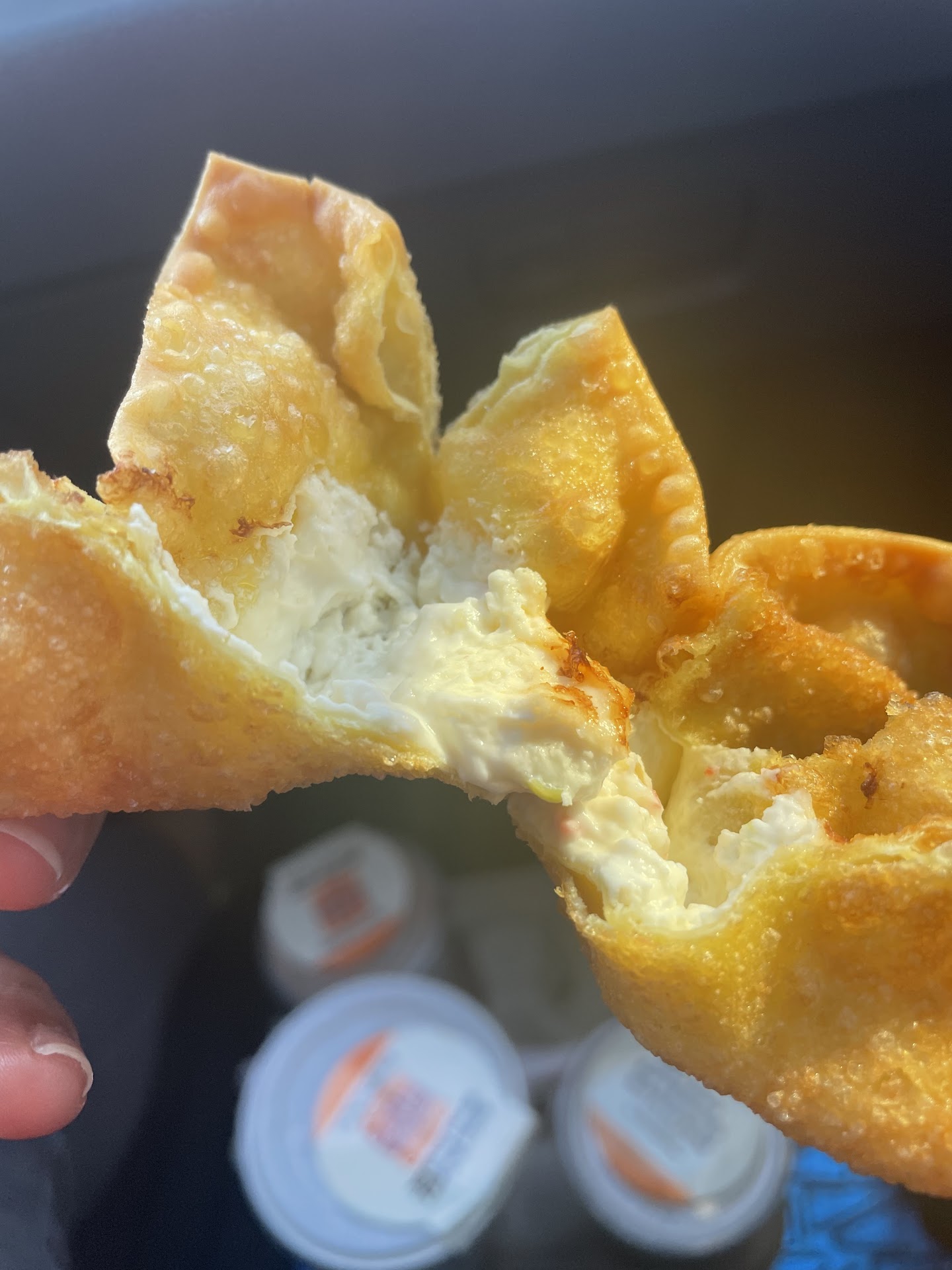 Below is a picture of crab Rangoon that I cannot even chew because it’s so Chewy and soaked in grease...