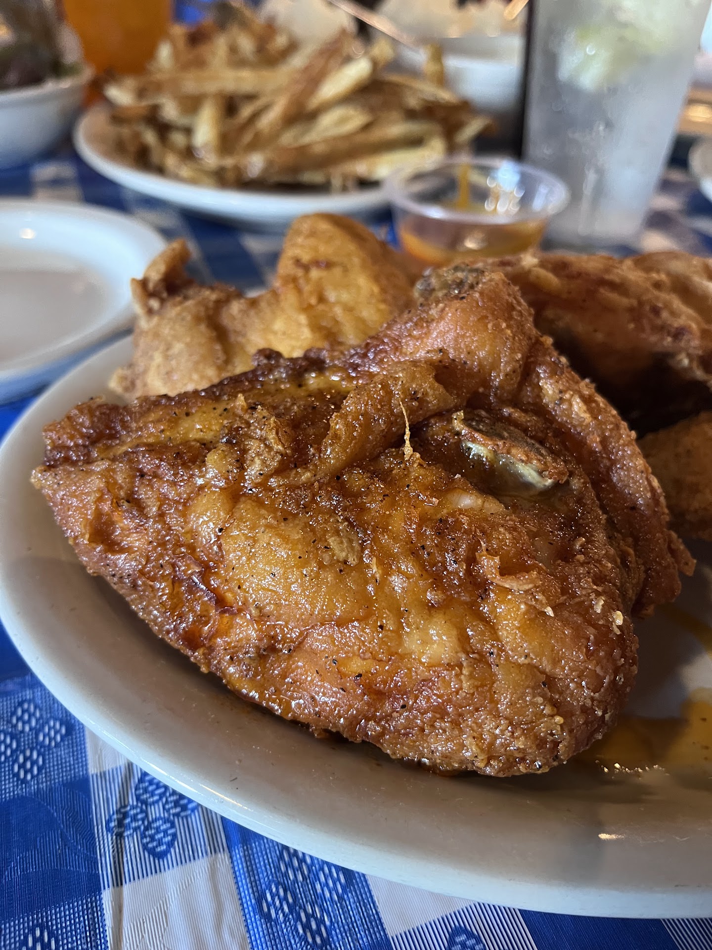 Ā Ā Ā Read more-Food was tasty but bland. The chicken is cooked well and not overcooked or dry. but it's lacking any salt or seasoning. The sides were great, my favorite was the real gravy. They come in huge boats to share with others. I'm not keen on giving all my sides to others at the table who just take them though. I was hoping for some leftover sides to take home but others ate my sides. The best menu item I had was the chicken Noodle soup. It's better than my own, and I make amazing chicken Noodle. The Cinnamon rolls were better than most I've had, so if you like Cinnamon rolls, you would love these. -The atmosphere here is great! Beautiful with lots of outdoors areas to explore, and cornhole on the front lawn. Big trees and picnic tables out back. Really lovely! -Parking wasn't the best though as the front lot fills up quick and only 1 handicap spot?? The rest of the front lot is on on a hill not suitable for anyone with mobility issues. The side lot is off to the side and down the hill and has a long stairway going up to the building, also not suitable for the handicapped. They should add more handicapped parking in front. -The service was ok. Our server had a very large group to handle so I understand It must have been hard. She seemed really forgetful though, and we were left constantly wondering when things would be brought out etc. -The price. Chicken plates were $20+ and kids plates start at $10+. For the amount and the quality I felt it was a rip off. Popeyes would have been better for half the price. If you want to charge that much for only 3 pieces of chicken you need to be the best in town. -The problems. We were sat right by the kitchen where servers come in and out. Normally that wouldn't be an issue for me except it made the walk way a bit narrow. While sitting there I was repeatedly bumped into by server's and staff and a customer also. Only 1 time did the server acknowledge that they bumped me. That probably bothered me more than anything about the visit. Maybe if it's going to be so crowded don't put such large tables right by the kitchen. -Will I be back? Possibly if someone invites me to go there, but if I were to pick the chicken place I'd probably pick...