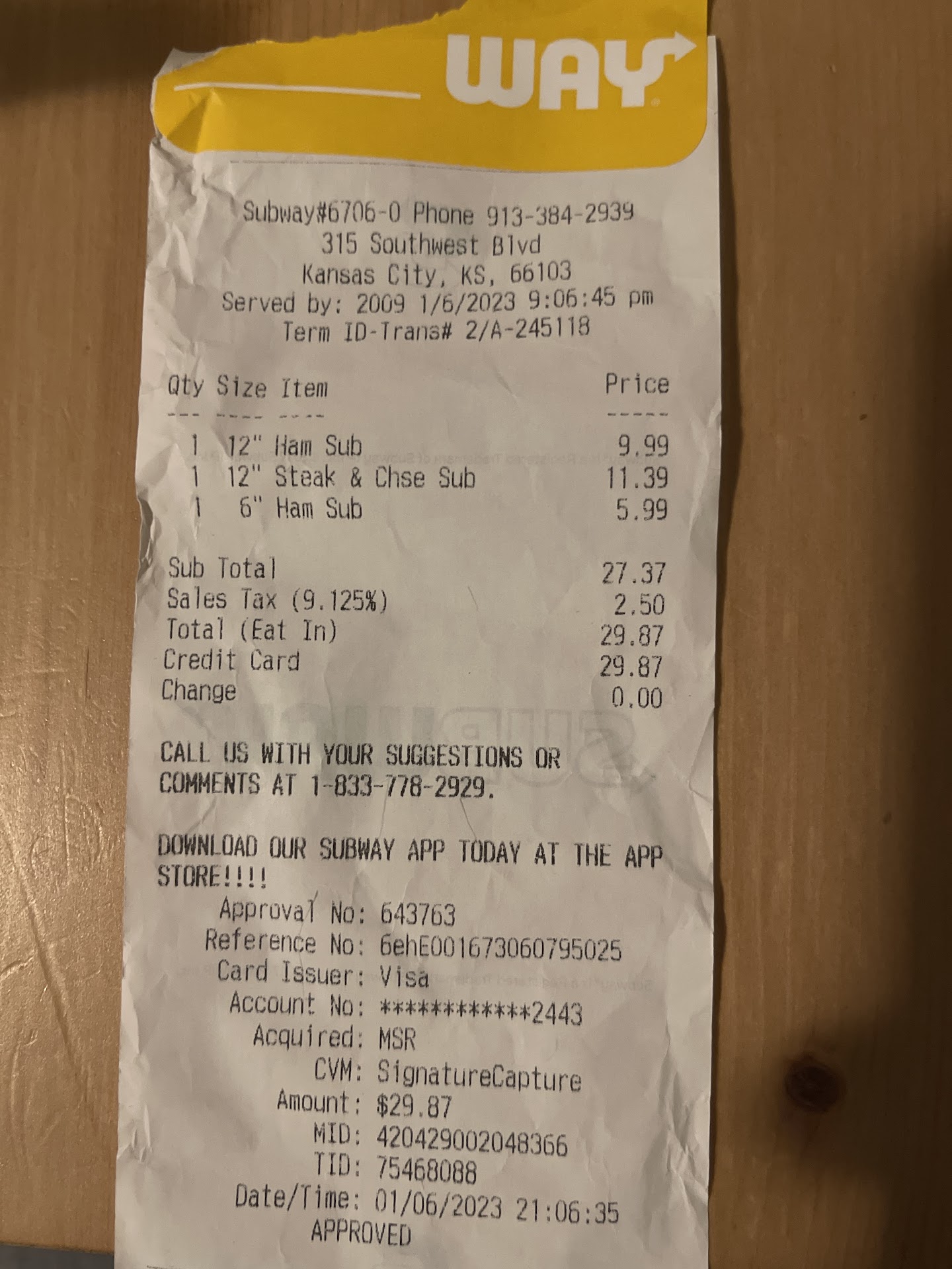 Oh, the food... Subway is an assembly line. What can go wrong? Subway is Subway. You always know what you are going to get. Just order the sandwich type that you like. Easy-peasy.