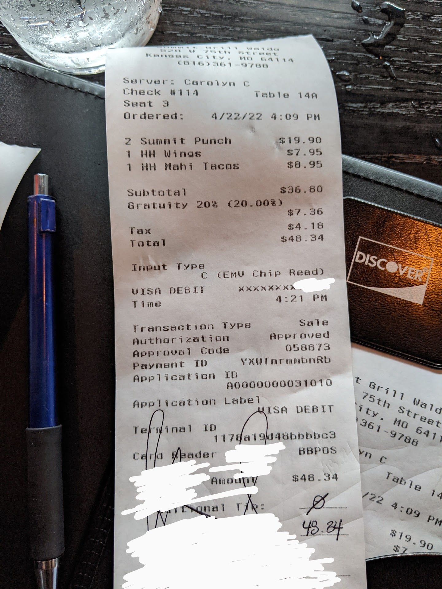 Read moreNew to the neighborhood, less than 2 blocks away, and decided to give Summit Grill a try with my elderly parents in tow. First, we parked in the back, but then had to go all the way to the front entrance to ask to be seated (all of us use canes - them because they are very old, me because I need hip surgery, and it seems to me that if you have a back entrance with the primary parking lot, maybe someone should be staffing that back desk? - also, the back entrance requires going down about 6 steps, so it is not very accessible, and if you have a someone who needs a ramp, be sure to drop them off at the front door). Then I stood at the hostess station waiting to be helped for several minutes while the hostess was on a call (biz call, but still - at least make eye contact, mouth "I'm sorry" and act like you notice people are standing around waiting to be seated, maybe wave over another staffer to help with seating -- but she really acted like I was invisible). A manager (?) finally came our way and got us menus and got us seated. Then the longer wait began, with no server showing up. After about 8 minutes, I got up and asked the bartender (the closest employee) to please ask someone to serve us. A few minutes later, I waved down the not-very-with-it hostess who was walking through the dining room and said we hadn't been served. And it STILL took several more minutes for a server to appear! The place was not slammed, and I don't blame the server who ended up with our table, but come on - it was someone's section, where was that someone? Very frustrating lack of communication, and this stuff is restaurant 101. I watched the same thing happen to a woman seated near us -- she was seated, her friend showed up a few minutes later, and a few minutes after that, they left because nobody was serving them. if I hadn't been with parents with serious mobility issues, we also would have left and gone elsewhere The food was pretty good, but I will not being going back after such a disappointing first experience. Luckily Waldo has a lot of other...
