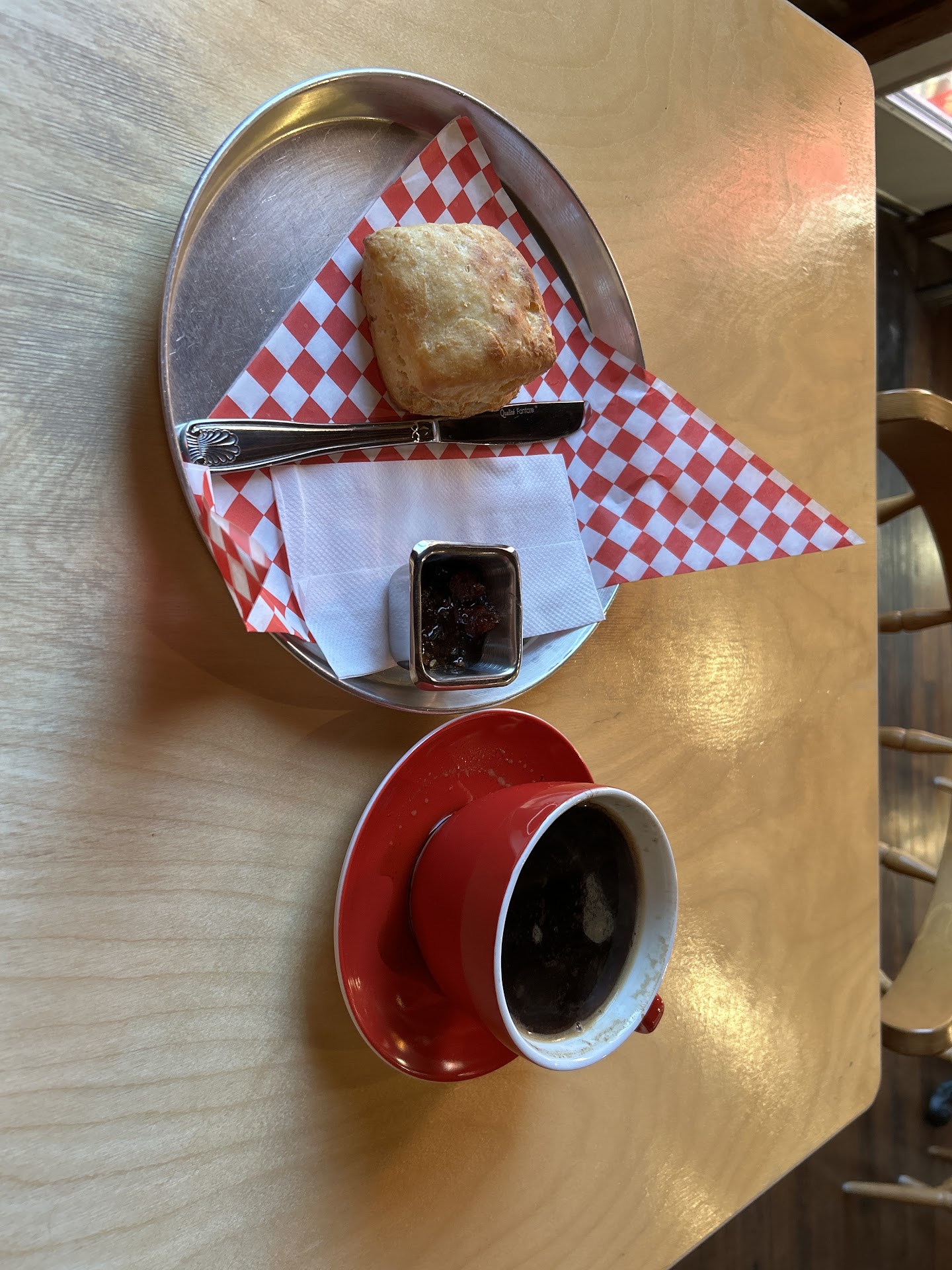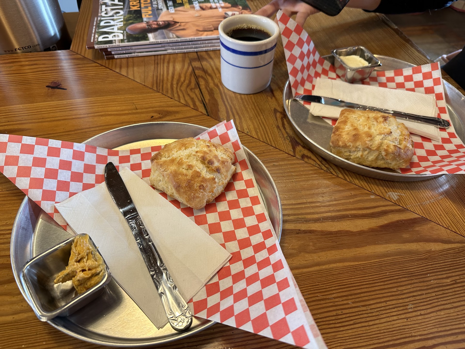 The cortado and americano I had were both delicious, with the espresso well pulled and having a nice balance of sweetness and a touch of acidity. The biscuit was the best I have had in KC, with a rich butter flavor, nice outer crunch and pillowy inside, and a touch of sweetness.