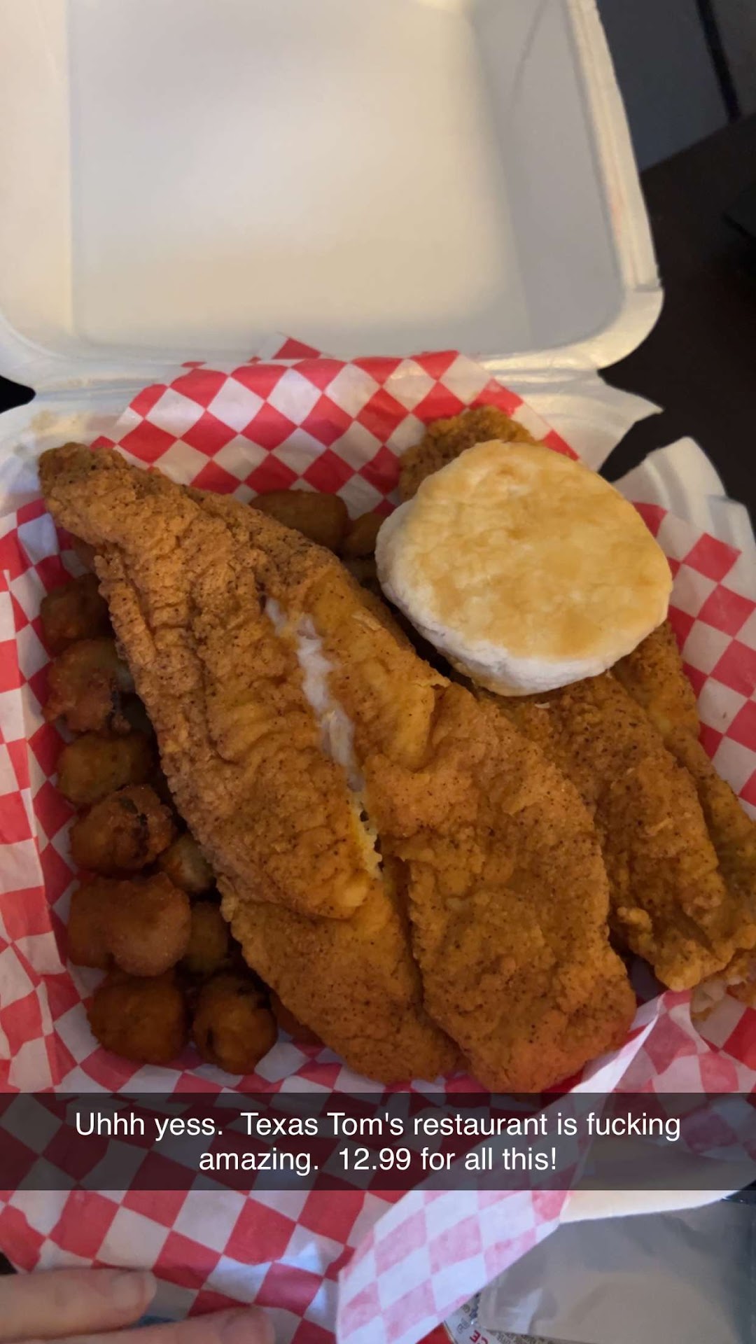 Ordered this from uber eats. OMG!!!!! Everything was soooo good! Huge portions! Cooked to perfection! Idk where the photos that are on here from before came from but please disregard that other ones because this was perfect! I am a huge critic and I honestly thought I was going to be disappointed because I looked at the gogole review photos after I placed my order....and I am absolutely impressed. The quality and value here are unmatched. A certain burrito bowl and kids choice taco meal with chips and guac and a large queso cost the same to deliver as two catfish combos, a chicken strip combo and three drinks a shake and a chicken leg and mashed potatoes and gravy. The okra covered the entire bottom of the container, my daughter's chicken strip side, cheese fries came in it's own container and it was FULL. It took the driver 17 minutes to get here and the fish was still hot and the breading was still crispy e to enjoy. They didn't forget the sauces either! Also, they have strawberry Fanta.... bonus points. Again. I can't say enough. You have got to...