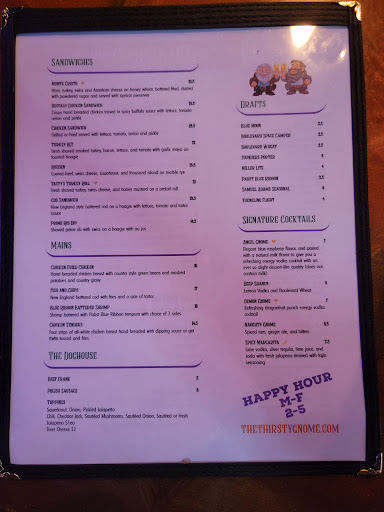 Read moreWow, I love this place. The theming was hilarious, gnomes all over the place..: but with a biker bar vibe?! Yeah, kinda crazy but in the best way. Now for the real reason you come here: The Food! I think my friend said it best- “They’ve got someone’s grandma held hostage in that kitchen!” The food was delicious, well seasoned and full of flavor without being greasy. We were a larger group so we started with The Gnome Stools and Caps (fried mushrooms and stuffed jalapeños) and then the loaded fries. Wonderful! Then we had to try the Chowder of the Day: Broccoli Cheddar. Perfectly seasoned. No need to add pepper. For our entrees, I went with the Fish and Chips (excellent batter and not much), my friend got the Chicken Fried Chicken w/ mashed potatoes in country gravy and green beans (had bacon in it, as it should!) My sister-in-law had the Ruben, which was the Thursday special with fries. It was pretty large sandwich! And my brother got the Southwest Cheeseburger with fries. Highlights: the sauces all tasted fresh/homemade. They have beer cheese sauce and queso on the menu, which… they didn’t NEED to do that, but they’re dedicated to craft. Love that. Any new restaurant that was opening next to Mr. Lee’s was going to have to bring their A-Game and The Thirsty Gnome did NOT disappoint. Also, if you sit at the bar, they have super comfortable bar stools AND chargers/usb ports with purse...