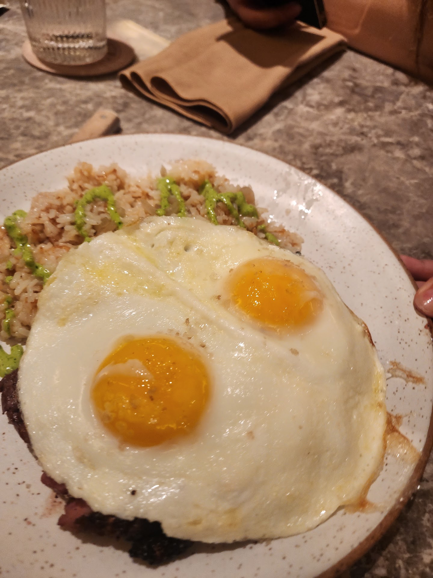 Food: We ordered deviled eggs, trout lavash, crab cake benedict, hash brown and ribeye and eggs. My friends and I were starving by the time we ordered our food and she was saying how you can't go wrong with deviled eggs and I jokingly told her I have had some really bad deviled eggs but was sure this would not be one of them. I REALLY wish I had not put that out into the universe because my goodness these eggs tasted like salty mustard with a hint of egg yolk. The crab cake benedict wasn't terrible. The crust on a crab cake was a bit thicker than most of us would have liked but the poached egg was cooked well. The ribeye and eggs were ok. The quality of the ribeye reminded me of the ads you see on Facebook that are $59 for 10 ribeye. The lemongrass flavor of the fried rice was good, but the texture of the rice made me think it was too freshly made to turn into a good fried rice. The eggs on there were also cooked well. The trout lavash was good. Some parts were saltier than others. The hash brown was probably the best thing we tried.