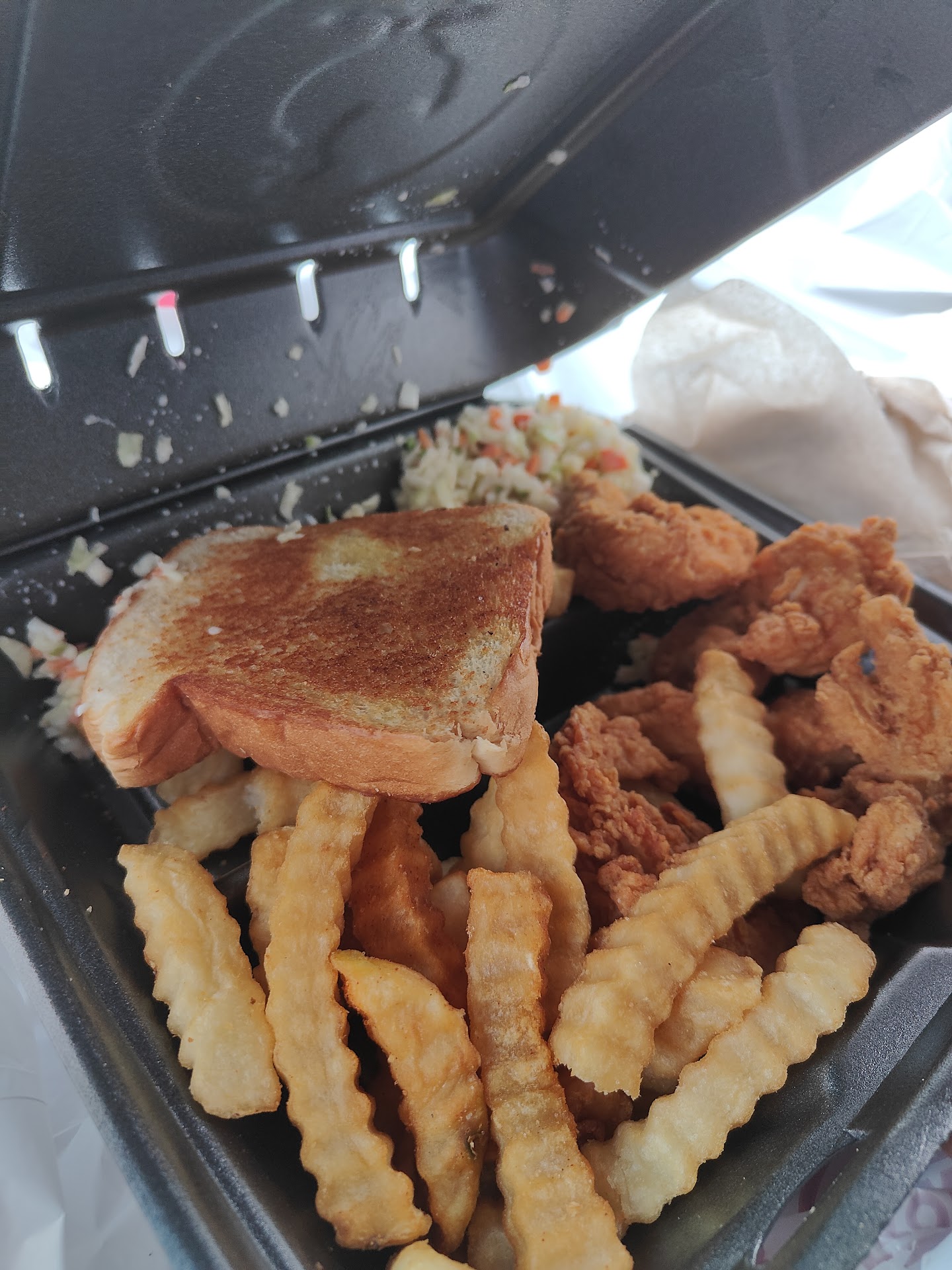 Read moreKid wanted Raising Cane’s but I opted for Zaxby’s since it was closer. Have always been a fan & good customer. Got bread with my meal & an extra basket of toast. Asked for all bread to be TOASTED on both sides. Got home & discovered that all of the toast (which looked amazing, toasted & super buttery) was so salty it was inedible. The outside edges were somewhat palatable on some but the entire part inside of the edges was butter soaked and tasted like pouring an entire packet or shaker of salt in your mouth.