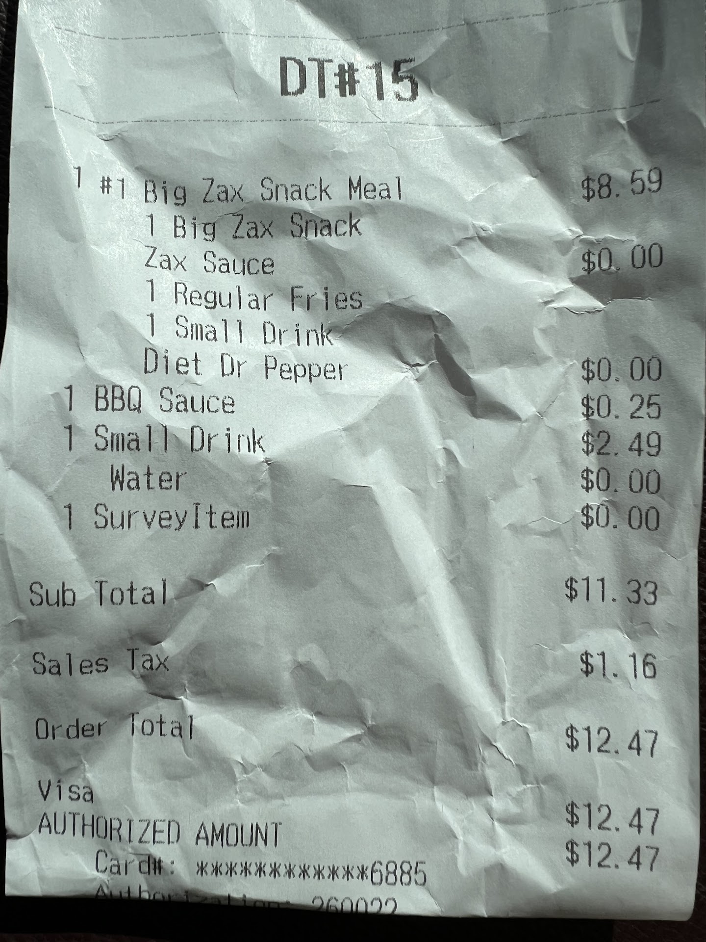 After a few minutes, a hand held a sack out the window and closed as soon as I took it. No "thanks" No "do you need ketchup" Maybe he was scared of the "bear" (60lb Lab/Mali mix)