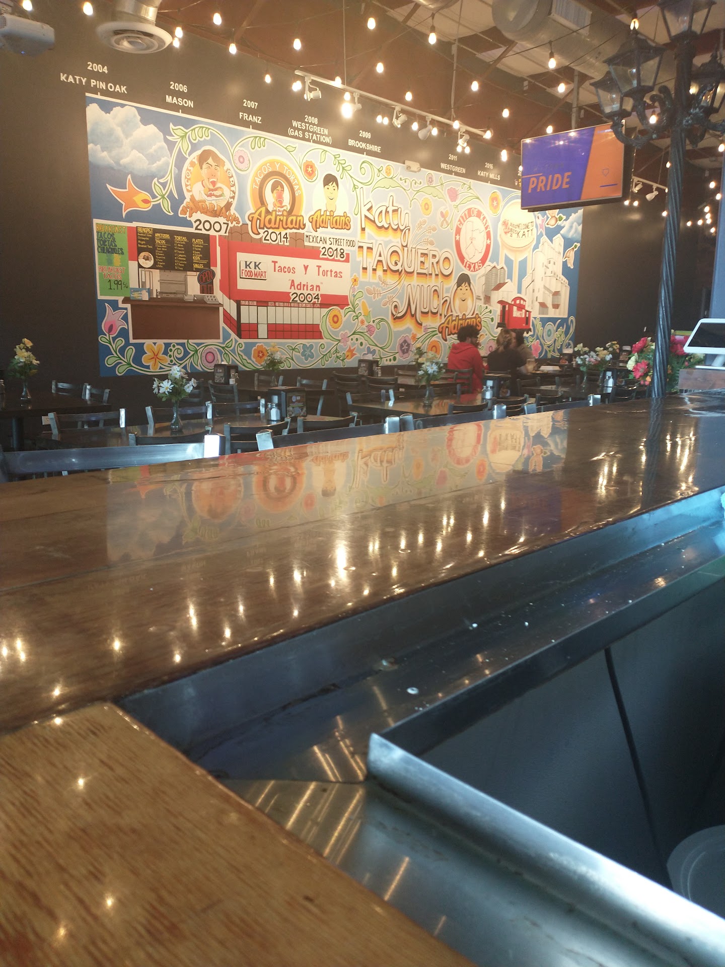 Ā Ā Ā Read moreI want to like this place. Adrian's is the closest place to where I live that offers birria tacos and quesadillas. It's unfortunate that I hadn't been this quasi iconic restaurant before as it's been around, literally, for years. Even driving by the place it was always a thought of stopping in but almost immediately forgetting it's in the very small, busy shopping center, next to a Walmart. So I finally got the opportunity to try Adrian's and I am conflicted about the result. On one hand, this place is really cool. As you can see in the mural on the wall, and the restaurant itself, it's inviting, warm, cozy, clean, comfortable. I walk in and immediately wanted to come back in the future to have a drink and hang out! But I'm here for food. So I order a birria quesadilla to-go. You learn a lot by taking food away to eat it later. For one, it lets the ingredients come together over eating straight away. On the other hand, food like McDonald's fries get worse after just ten minutes out of the fryer. The order didn't take long and I noticed a few Door Dashers in and out as I waited. Means the food is good! What did I get for $12.99+ tax? What you see is what you get. One large flour tortilla filled with pork birria and cheese, folded in half and cut into 4 portions. Served with birria broth, two sauces, chop onion, cilantro, lime wedge, and pickled purple onion. The flavor was okay. The pork was a little tough. The grease hits pretty hard. Keep the birria broth, I wasn't a fan. - the dish itself was cooked well dispute the tougher meat. The two sauces were really great, flavorful, spicy! But the sauces were the highlight. This was not the best birria I've ever had and it's a little pricey but the 'heart' is in the right place. Will I do Adrian's again? Heck yes! I'm going to go and grab a drink and try something else on the menu! It's a place I don't want my 'less than' experience to hurt this place! I want Adrian's to succeed! It's a cool place and I definitely recommend...