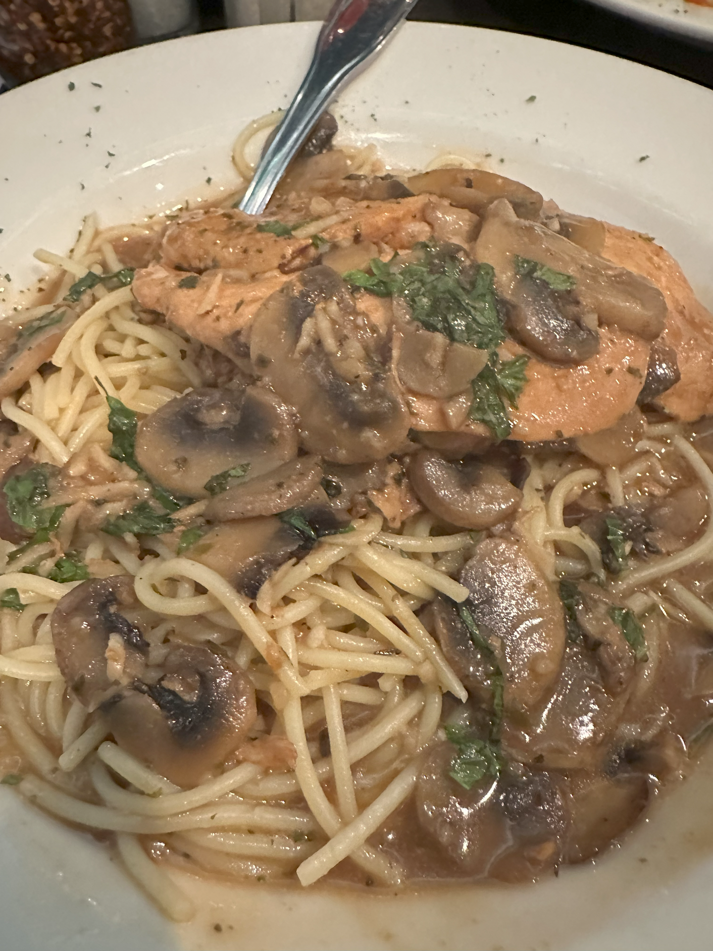 Next, I ordered the chicken marsala which came out hot and fresh, but I did not like their rendition. The marsala sauce had a great flavor but was more soup consistency which I didnt personally appreciate. The noodles were cooked perfectly, and the chicken was good but a little chewy. I ultimately requested to return this in favor of the chicken alfredo.