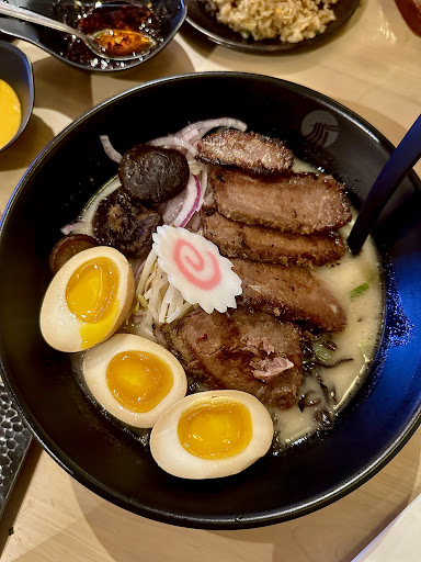 Food is phenomenal. The basil chicken karaage and pork belly baos are must order appetizer. Sushi was very fresh and well presented. My favorites were the sea crown and airi roll. Spicy miso ramen had delicious broth, thick pieces of pork chashu and the eggs were perfectly jammy. The 72 hour ramen was the highlight of the meal. The rich, beefy broth was amazing and topped with angus beef that was perfectly cooked. They have beer and sake to pair with your meal as well.