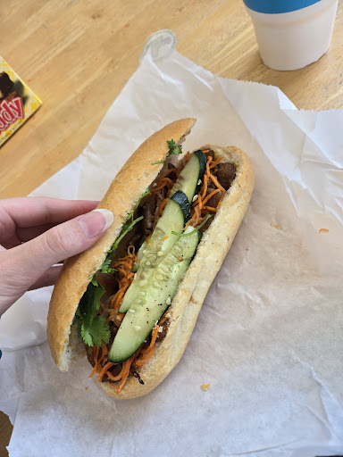 An accidental find. Was at Katy Asia town for boba tea. Found myself craving a banh mi Xiu Mai and this place was close by. Facility is nice and clean, staff was super friendly! I forgot to grab straws from the boba tea place and asked them if I could buy 3, the register person smiled and said don’t worry about it and gave them to me. I got my food and left. In my car, I break open the sandwich, took a bite and was amazed. Baguette was perfect, chewy inside, crisp outside, the Xiu Mai taste like they just made it! Veggies exploding out the sandwich! And they didn’t skim on the meat like other banh mi shops. Half filled me up, saving the other half for dinner. Talk about perfection! Def must try if you haven’t been! I was looking over their menu while waiting and there was a ton of stuff I wanted to try but needed to see if this banh mi was any good. I’m...