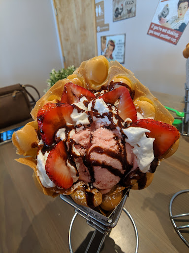 At Bubble Egg, you can get your fill of ice cream waffles and drinks. The Bubble Waffles, made from Hong Kong style egg waffles and filled with ice cream, are the specialty here. You can enhance your waffle up front by adding fillings that range from bacon to chocolate chips to cheese. You then select among ten or so ice cream flavors and you can then top with assorted nuts, fruit, etc. The waffles and the special fillings, ice cream, toppings, etc are much better than the typical ice cream cone.