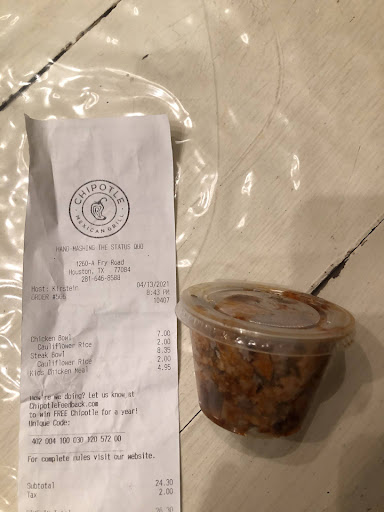 Read morePretty disappointed with one of the staff members there last night. Her name I was told was Sam.The staff was reluctant to give me her name.My Fiancé and I went to grab dinner for the family and we happen to attend this Chipotle very often. When I let the staff know we were going to need 5 bowls they began to act as if we were inconveniencing them. We felt super rushed and then they ran out of rice. She began just barely giving maybe half a spoon per bowl when I had asked for double rice per bowl. When I mentioned this she condescendingly told me,“well we are out of rice”. I responded by saying if I am paying for the extra rice I would like the right portion. She became confrontational and said that I don’t pay for extra rice and wanted to move the line along, again, with giving just a sliver of whatever rice was left on the bowls. I’m paying for each plate so yes I’m paying for the rice.Then in the middle of this another staff came with fresh rice. She added a bit more to the last bowl but did not fix the other four. By this time she had made enough of a scene that other guests were watching. I did not appreciate her lack of customer service and making us the focus. We also ordered extra chicken and she only put one spoon on some and yet I still paid for extra. We grab dinner here often and this visit put a bad taste in our mouth. Hope she gets...