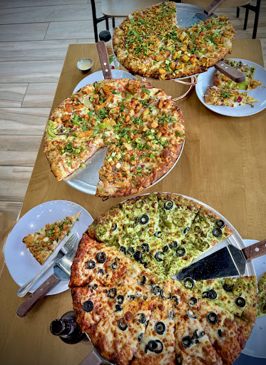Read moreAfter a fun family baseball game, we were on the hunt for a great pizza spot and stumbled upon this absolute gem! From the moment we walked in, we were greeted with such a cool and vibrant atmosphere. The restaurant had this awesome Bollywood-inspired vibe that was so unique and inviting. The staff were super friendly and really knew their stuff. They gave us some fantastic suggestions, and we ended up with three amazing pizzas: a half chicken tikka, half tandoori chicken; a half curried crisp cauliflower, half chili paneer; and a half pesto and olive, half tomato and olive. We also got the cheese garlic breadsticks, which were a delicious surprise! They had just the right amount of garlic, and a single order was more than enough for our whole family to share. Each pizza was an explosion of flavor! Seriously, these pizzas are loaded with toppings, making every slice a hearty, satisfying bite. The flavors were so well-balanced; you could taste every single ingredient without any one thing being too overpowering. The vegetarian pizzas were a total standoutâthe spices were perfect, and they were so incredibly flavorful. The chicken tikka and tandoori chicken pizzas were also piled high with toppings and just tasted sensational. Even my kids, who usually stick to plain pizzas, were happily digging into these adventurous slices! I paired my meal with a refreshing Blue Moon beer, which was the perfect match. My only tiny piece of feedback is that I personally prefer a crispier crust, but that's on meâI should have asked for it! The pizzas were all perfectly cooked, though, and the crust was a nice medium chewiness. Overall, this place is an absolute winner. If youâre looking for a fun spot with incredible, flavorful pizza, youâve got to...
