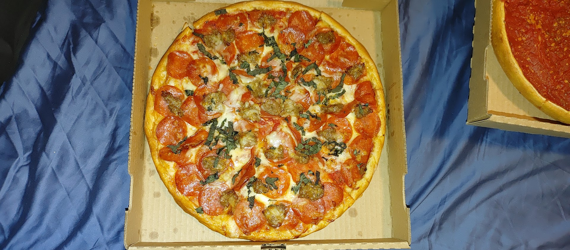 As for pizza in general then NY style wasn't anything special, the crust was okay and no cheesy pull but you get plenty of sauce and toppings to make up. ( You can eat the slice all the way to the crust edge without needing additional sauce ) The HUNT'S 3x pepperoni and sausage. They were not stangy with the toppings!