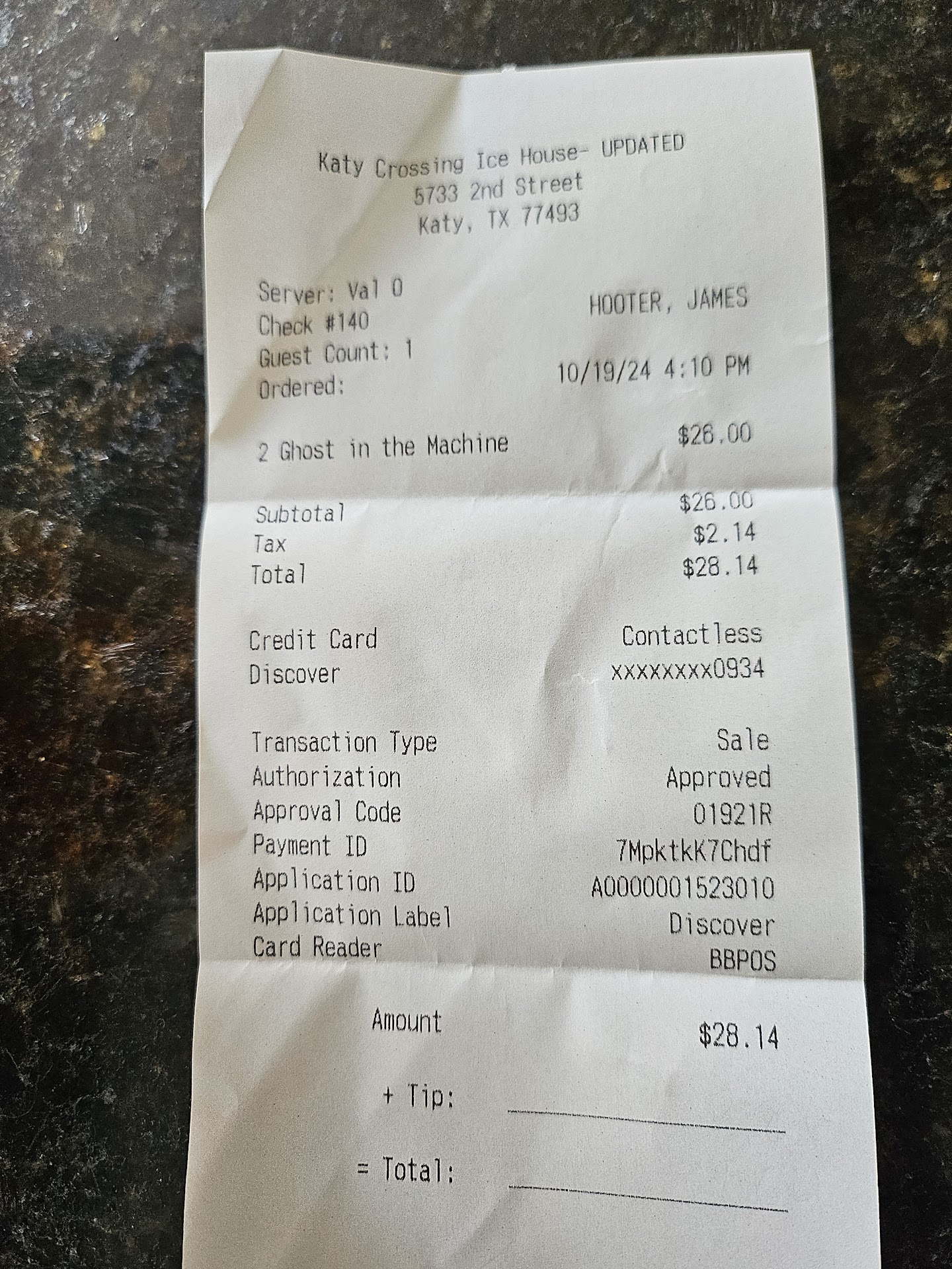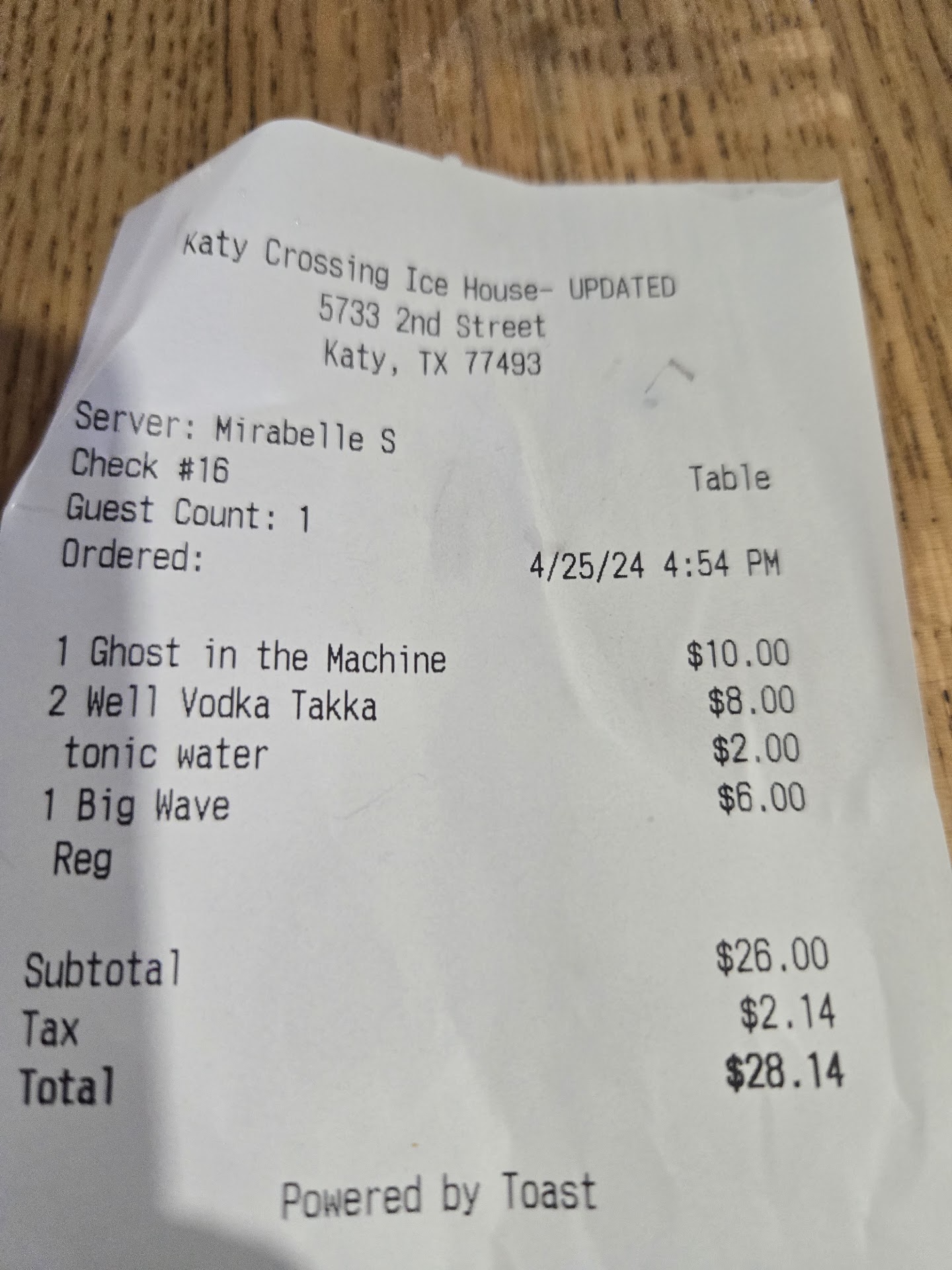 Read moreFound this place just driving by since we were planning to go to the Katy Beer Garden but the parking was ridiculous there at the beer garden so I was so glad we found Katy Crossing Icehouse. Nancy provides excellent service to our group and the cocktails they prepare are spot on. Also the bottoms up beer draft system is cool to see when sitting at the bar. Truly recommend this place if you want a good chill vibe and want to support local...