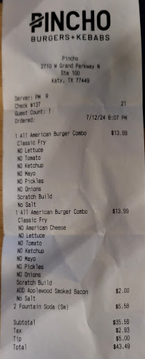 My first time visit to Katy, Texas location. Nice and clean. Food was good. Had Pincho Burger with cheese and everything else. Fresh ingredients. Nice green lettuce. Added Cajun Fries. Nice spicy bite seasoning. Meat patty was thicker than Whataburger but not as thick as a Whiskey Cake Hamburger.