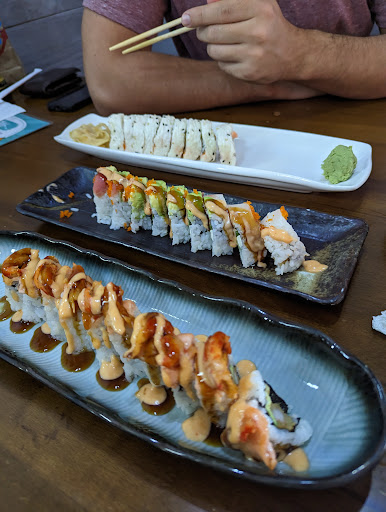 First off I want to rave about their atmosphere because the entrance is beautiful and fit for a sushi restaurant and the rest of the restaurant doesn't fall far behind. They even have nice bathrooms with nice toilet paper, not cheap stuff. I appreciate that. The staff is nice and respectful. The sushi was delicious and came out fairly quickly. I also want it to be known that this place has an abundance of food options and has a cute little kid menu as well. The pricing is pretty standard, a little on the higher side but it's quality food. We ordered edamame and 3 rolls. I always get a tiger eye roll, it was very good and then we got 2 of their specialty rolls which I have to say the rolls here are definitely more intricate than other places. We got the skai and the other roll I can't remember the name but it came with crawfish on top of it. They were all so delicious. 5/5. We had already started eating before I took pictures, because we were starving but after trying them I knew I had to take pictures for the review.