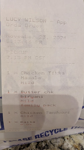 Read moreI'd give zero if I could! Ordered at 5:13 for pick up at 7:15. Got a text at 6:39 but didn't see it until I was getting in the car at 7 to go pick up the food. Called on the way and was told "your food is here ready, come pick it up" Asked them had my food really been sitting there so long and they said "no, it just came out now, he pressed the button by accident earlier" clearly a lie as on the phone 10 mins before I was told it was already sitting there. Got it home, food was room temp and chicken tikka masala was missing. Called them and all they say is come get the tikka masala. Told them I'm not driving there again and anyway everything was cold so I want a refund and they say they'll call back. They call back, I explain to someone else and they say they'll give a refund. 15 mins later another call asking for my address as they'll deliver the tikka masala... I say no, I was told I was getting a refund. It's 7:50 by this point and we finished eating the cold food. They refused to refund me, never addressed the old...