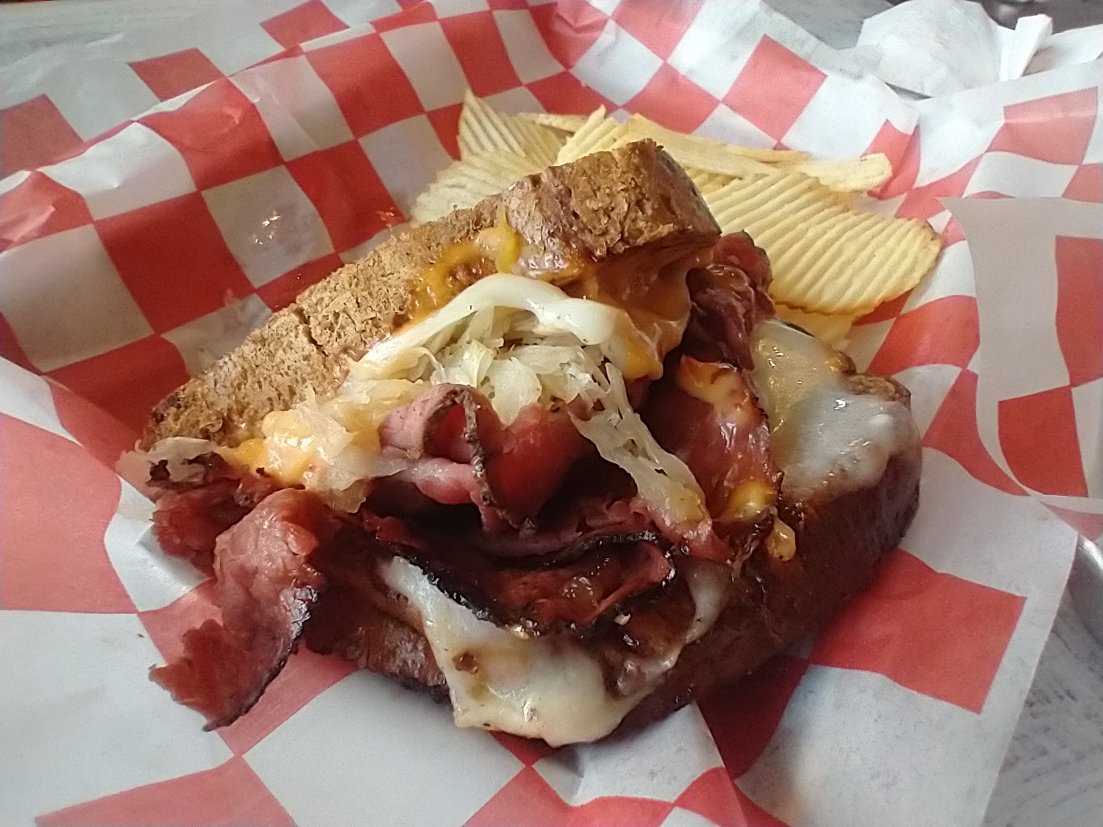 French dip with au jus and chips - my hubby did not want to add cheese and he and I shared. The bread was soft and absorbed the au jus just fine. The au just was a bit salty but the sandwich made up as it was under seasoned