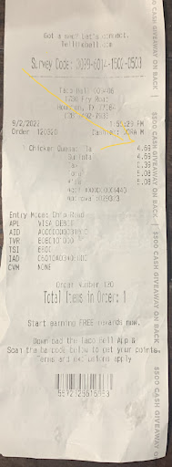Read moreIf I could give less stars then I would. This had to be the absolute worse taco bell I've ever stopped at and thats saying something! The restaurant was nice and clean and looked great. However the food and workers left a lot to be desired. We stood at the front counter for several minutes with no one in site to help us. There were people I'm the back making food who never even acknowledged us. We called out hello several times before someone in the back finally got someone to come help us. I get it sometimes people are busy, that can be excused. The food however cannot! My daughter got a am crunchwrap which they used potato bites instead of hashbrowns on which took away from the taste tremendously. Usually if you use the wrong product you check with the person first. Then the queaadilla I ordered was dripping sauce all out the sides and had more sauce on it than cheese. Not to mention it was only cut on the top so there were no pulling pieces apart to eat. All the sauce caused the tortilla to be super soggy and just all...