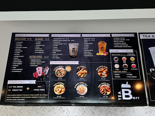 Stumbled upon Tea Barr while driving and decided to give it a try. The place is clean and has a pleasant ambiance. I ordered the peach green tea with strawberry poppers, and it was absolutely deliciousārefreshing and perfectly fresh. My husband enjoyed his strawberry and banana smoothie as well.