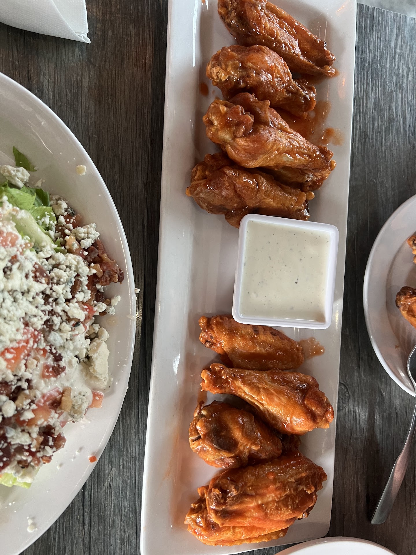 Atmosphere- perfect balance between awesomeness and comfort. It's got that Cheers type of feel to it, but with good food and not just for the regulars. Friday and Saturday nights they have live entertainment on the patio, which is always a great way to spend the evening. Kids are welcome and they have the 3 primary kid dishes available. Chicken tenders, Hamburgers and Mac n cheese.