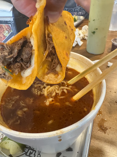 Came here with my family. Food was delicious, I ordered the enchiladas with birria OMG the best Iāve ever had. My kids had the quesabirria and my husband the ramenbirria. Everything was very good. Highly recommend this place. And they offer aguas frescas too!